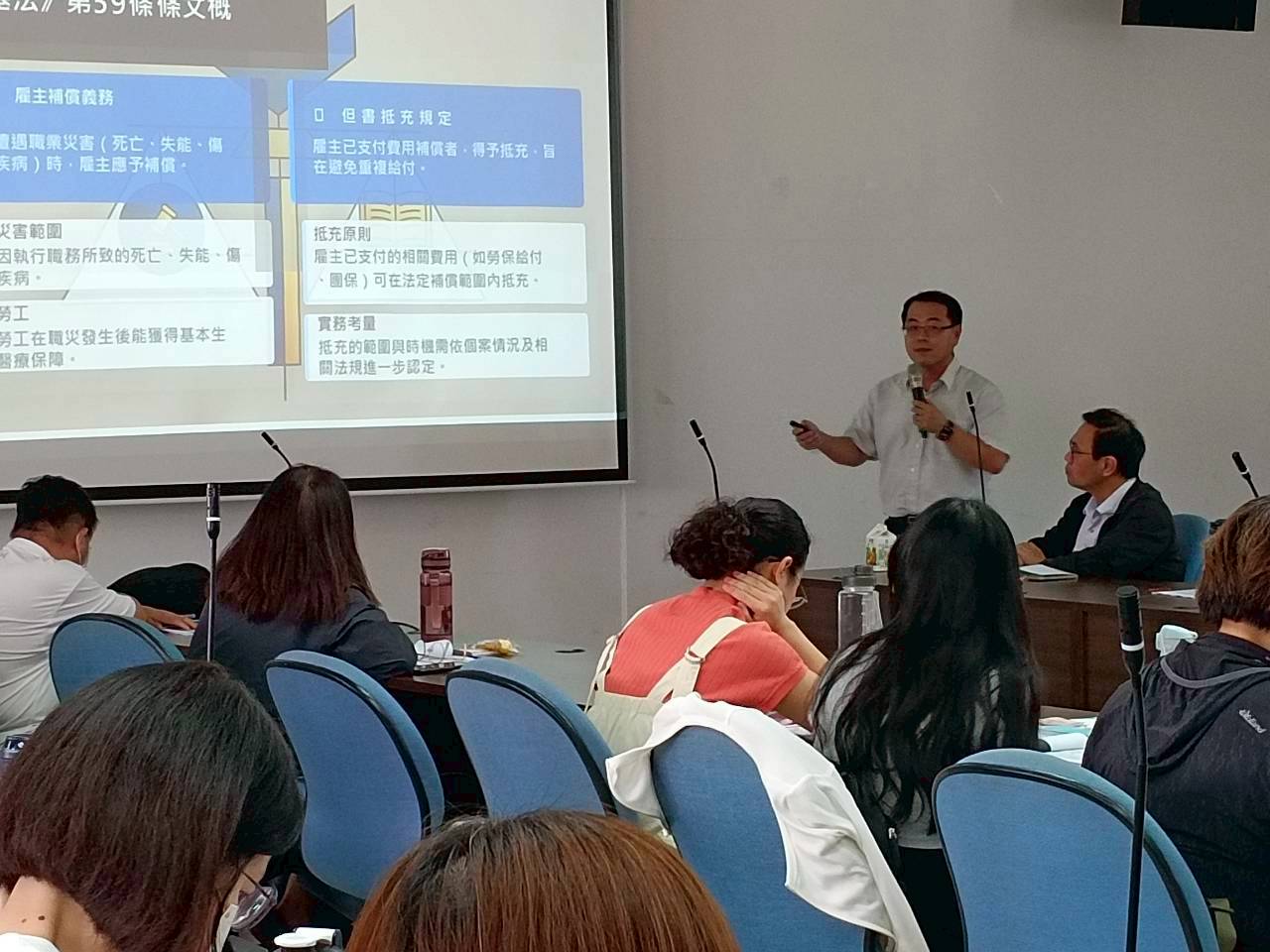 緊接著舉辦之個案研討會,則以《勞動基準法》第59條為核心,延伸探討職災勞工死亡給付及遺屬繼承相關法規之適用與實務案例。邀請實務經驗豐富的李耿誠律師透過實際個案分析,深入了解職災發生後雇主應負的補償責任、遺屬給付申請,以及勞基法與勞保條例間的權益銜接問題。職災事故除涉及勞工保險給付外,遺屬繼承與補償爭議亦日益複雜,透過研討將協助前線職災專業服務人員及法規規定,提供職災勞工及其家屬更即時與周全的協助。