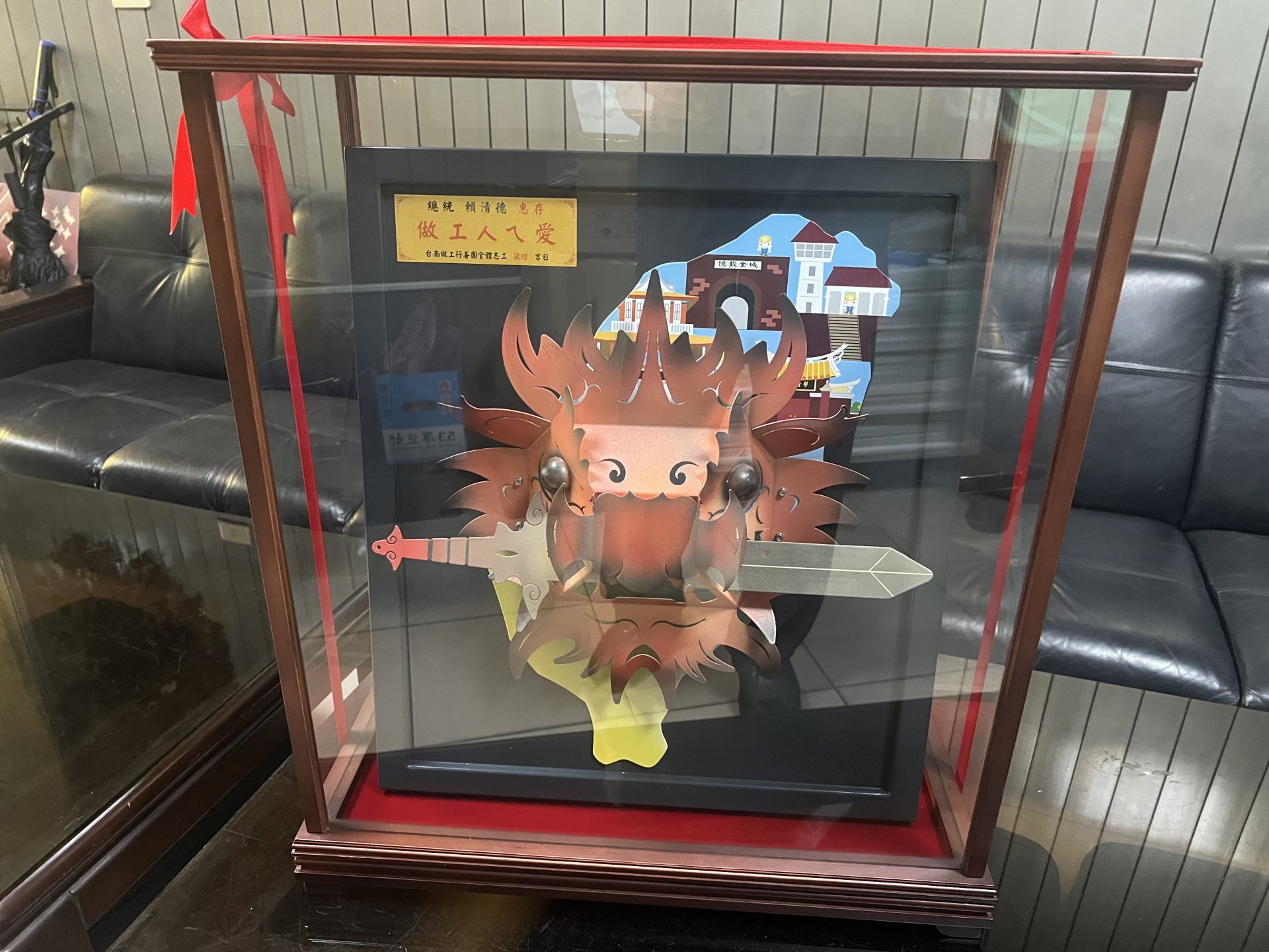 ▲台南做工行善團致贈給總統賴清的的紙雕。(勞工局 提供)