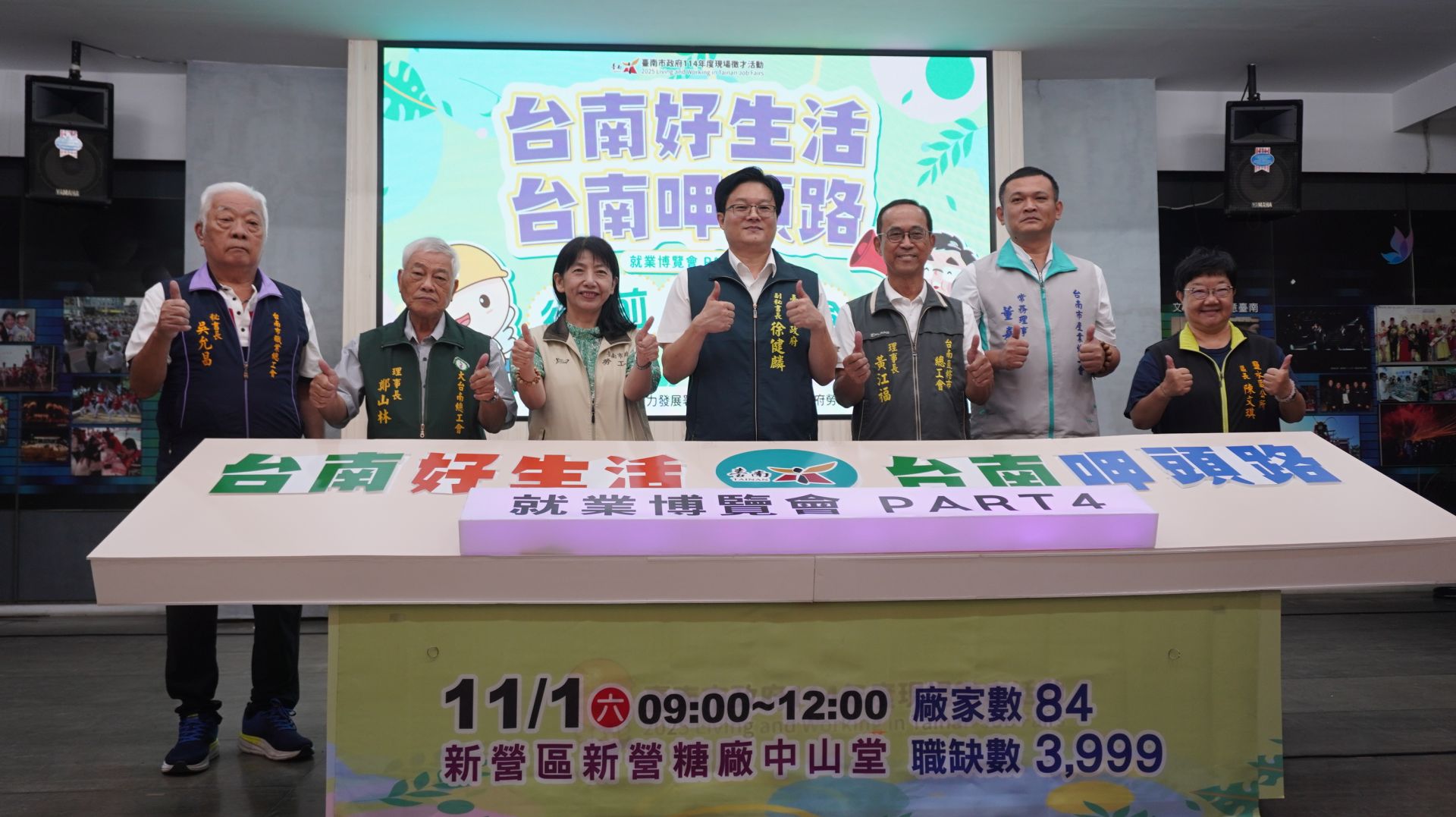 今(28)日在新營區民治市政中心行政大樓1樓大廳舉辦2025「台南好生活 台南呷頭路」第4場大型就業博覽會行前記者會,由副秘書長徐健麟、勞工局副局長顏靚殷、鹽水區公所區長陳文琪、大台南總工會理事長鄭山林、臺南直轄市總工會理事長黃江福、台南市產業總工會常務理事董嘉明、理事黃育彬、台南市職業總工會祕書長吳允昌、社團法人台南市勞工志願服務協會理事長梁志男、台南市中小企業榮譽指導員協進會會長吳妤姍、臺南市中小企業服務中心專員陳麗如、崑山科技大學研究發展處副研發長王平、社團法人中華職訓教育發展協會常務監事林尉民等多位貴賓親臨記者會,共同鼓勵求職者11月1日來「台南呷頭路」,找到好工作。