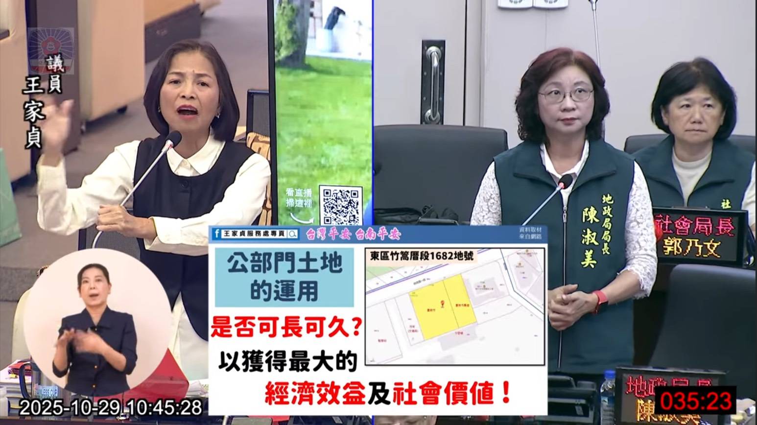 ▲市議員王家貞痛批中央、地方各吹各個調 犧牲台灣經濟更糟蹋公家土地價值。(記者黃雋淮 翻攝)