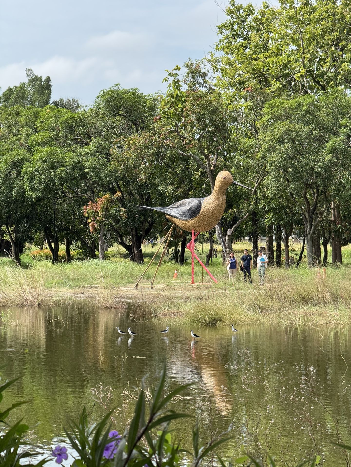 市府都發局表示,《躼跤紅跤痕》不僅是一件藝術作品,提醒人類行走於自然的邊界,唯有以柔軟與敬意面對環境,方能與萬物共生。誠摯邀請市民朋友前來大隆田生態文化園區,親臨感受竹藝與濕地交織出的靜謐詩意,與高蹺鴴一同在自然的節奏中,留下共生的足跡。