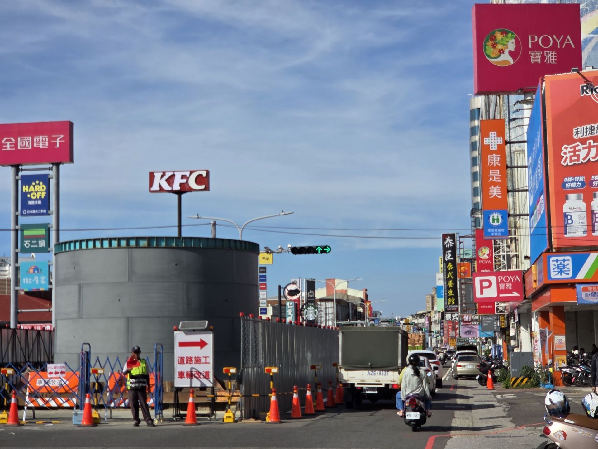▲中華路寶雅前施工釀壅塞 議員朱正軒籲交維審查應更嚴謹、跨局處協調落實。(記者黃雋淮 翻攝)