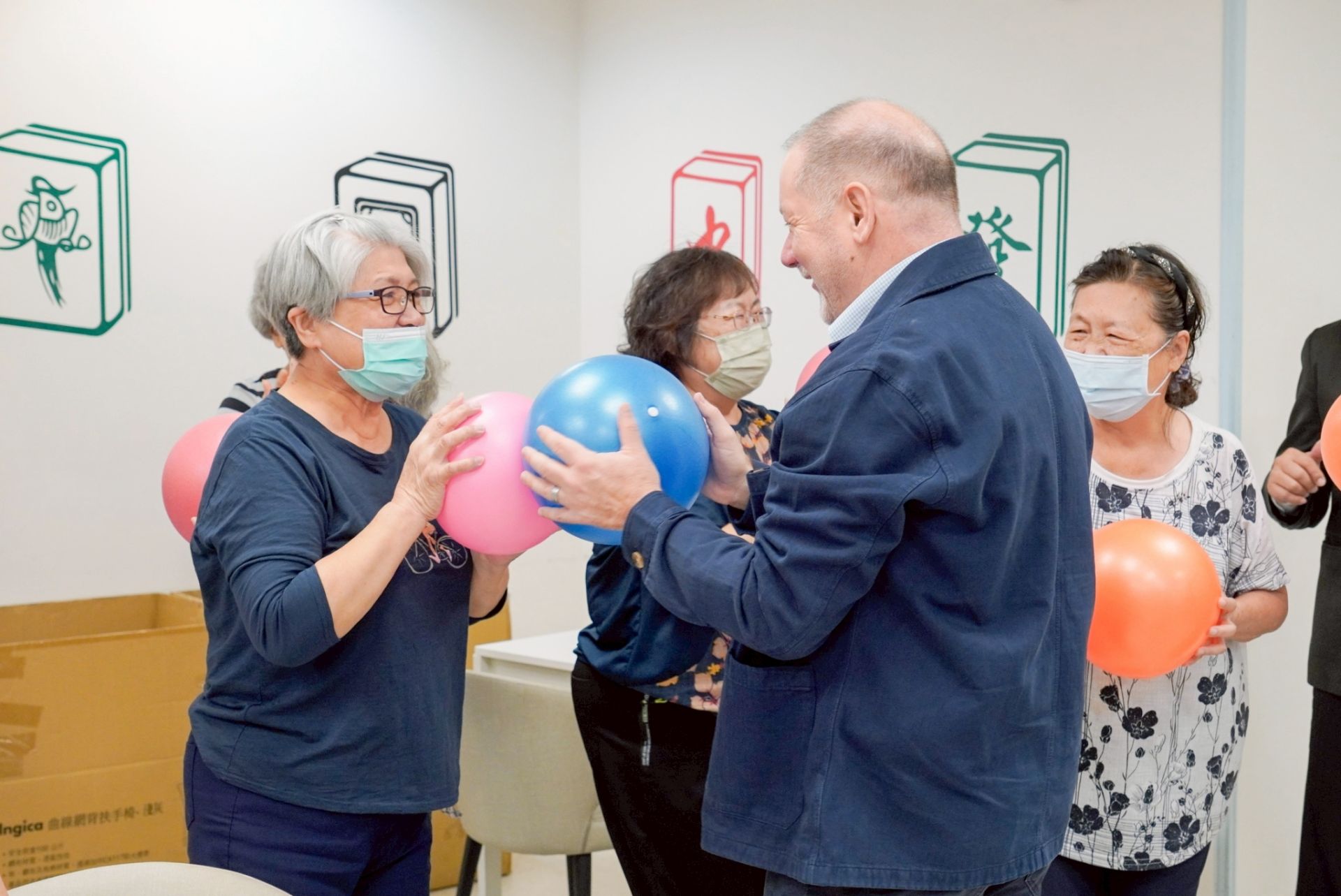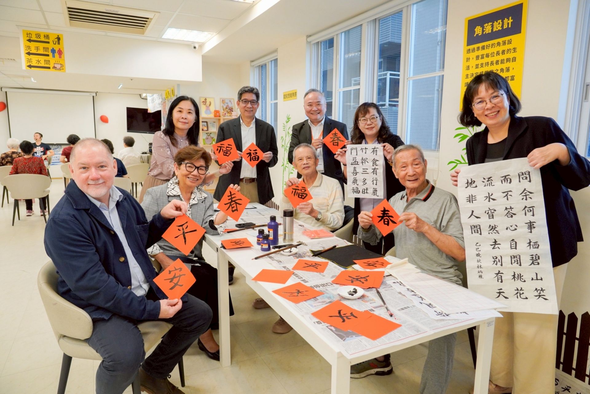 參訪過程中,社會局與協會團隊向來賓介紹「認知悠能」的核心精神與推動成果,並帶領參觀中心環境與體驗課程。當日長輩正專注於書法活動,Rick也親自提筆體驗,首次書寫中文便笑說「中文字真是優美!」他盛讚這樣的課程設計與空間規劃能啟發長者的專注力與自信心。