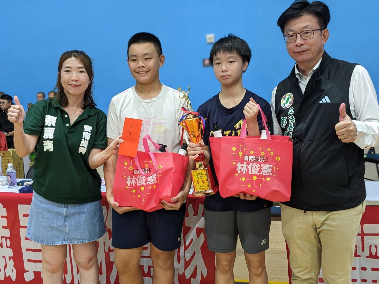 市長黃偉哲蒞臨現場為選手加油打氣表示,台灣勇奪羽球金牌帶動運動熱潮,台南市運動風氣也相當強盛,每一個球場都使用量相當高,因此未來也將加快腳步建置更多良好的運動場地,讓市民朋友們可以就近鍛鍊身心,提升體育風氣,將台南打造成一個健康運動城市也為國家培育出更多運動好手;林俊憲表示羽球在臺灣擁有廣大群眾與國際競技亮眼成績,地方政府若能從社區賽事推廣起,建立完善的基層培育與訓練環境,將有助於發掘更多優秀選手,也能讓運動人口持續成長。未來也會持續協助地方政府爭取更多體育設施經費,讓更多民眾能在安全舒適的環境中培養運動習慣,打造全民運動城市。