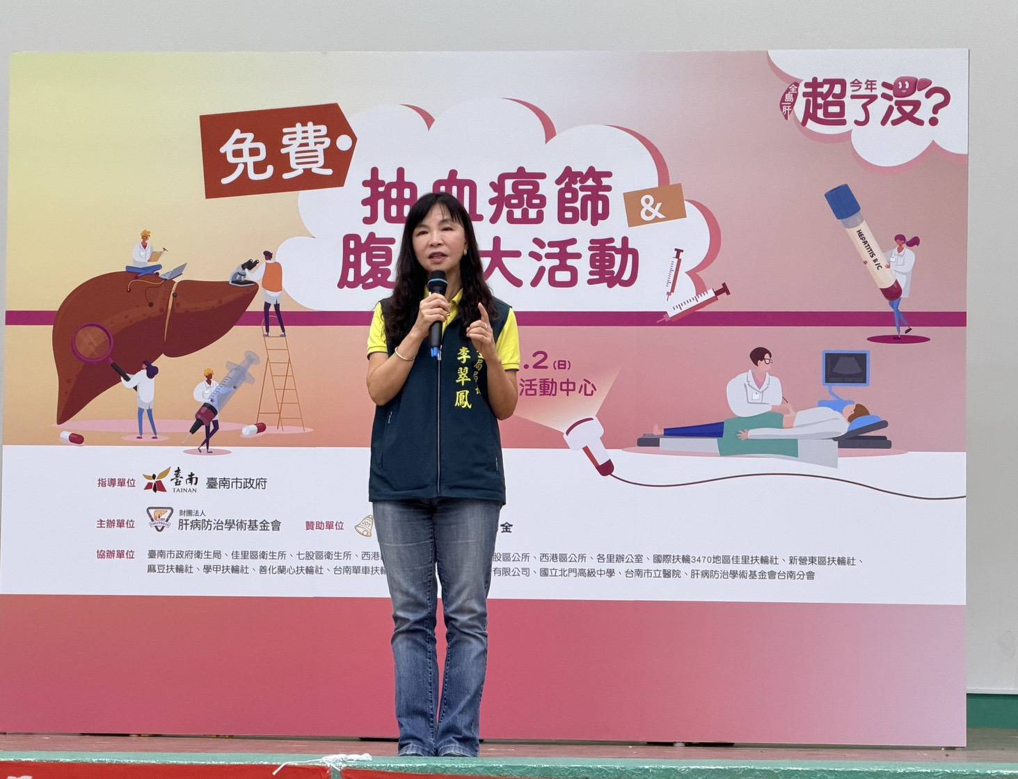 臺南市政府衛生局局長李翠鳳表示,目前臺南市仍有2-3成符合資格民眾尚未接受C型肝炎篩檢,感謝財團法人肝病防治學術基金會、積餘慶公益信託基金及國際扶輪3470地區大力動員,提供這麼有意義的篩檢活動,造福臺南鄉親,也呼籲市民朋友,如果篩檢結果有異常,千萬別置之不理,後續會由肝炎個管師及衛生所護理人員協助異常轉介就醫,唯有定期追蹤、積極治療,才能守護肝臟的健康。
