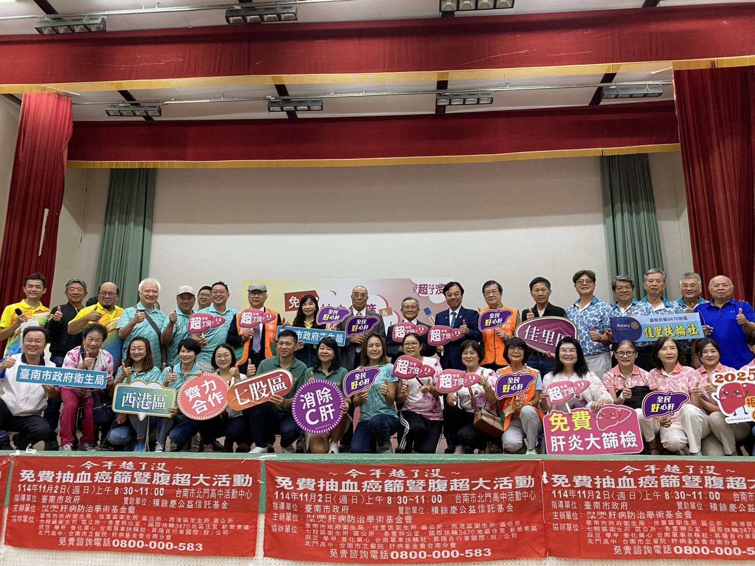 「今年超了沒-免費抽血癌篩腹超大活動」今日於佳里區北門高中盛大舉辦,此次活動由財團法人肝病防治學術基金會、臺南市政府衛生局、積餘慶公益信託基金及國際扶輪3470地區共同合作,提供市民肝病及癌症指數抽血檢測、腹部超音波檢查,希望透過篩檢讓鄉親朋友更加重視自身的健康。