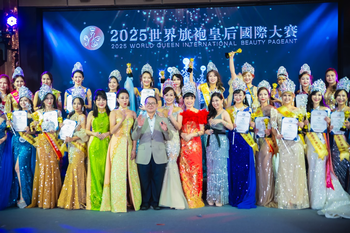 2025年世界旗袍皇后國際大賽 名媛組的冠軍3位分別是高施愛、張甯甯與黃琳婷