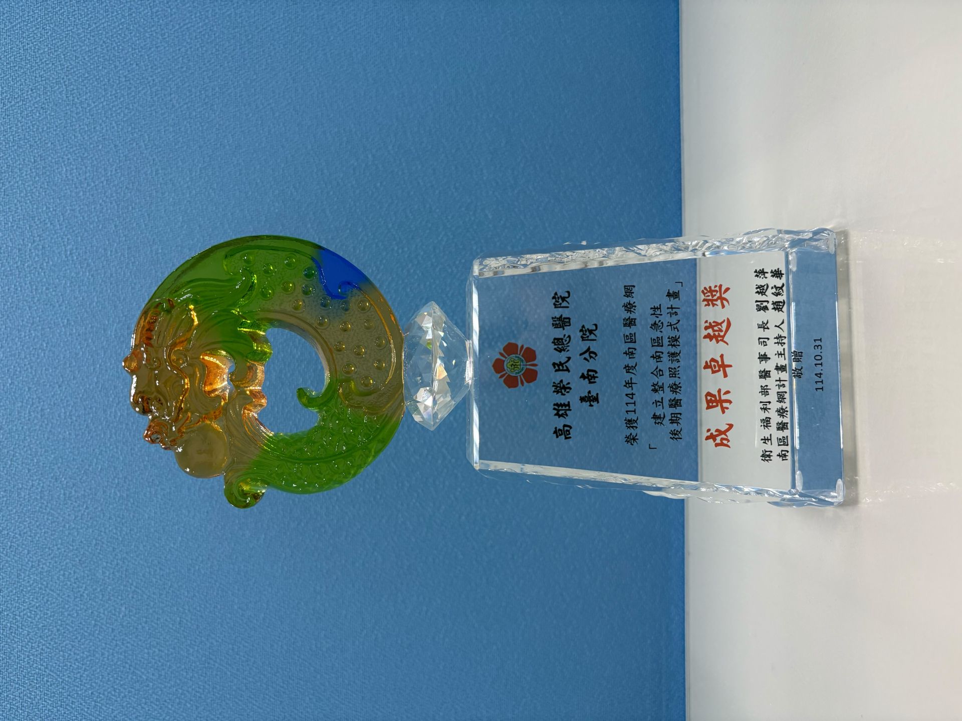 南區醫療網於10月31日舉辦「114年度南區醫療網-績優醫院頒獎典禮」,高雄榮民總醫院臺南分院以「建立整合南區急性後期醫療照護模式計畫」榮獲「成果卓越獎」,由復健科主治醫師兼主任王一舟代表受獎,展現本院積極推動韌性醫療體系的成果亮點。