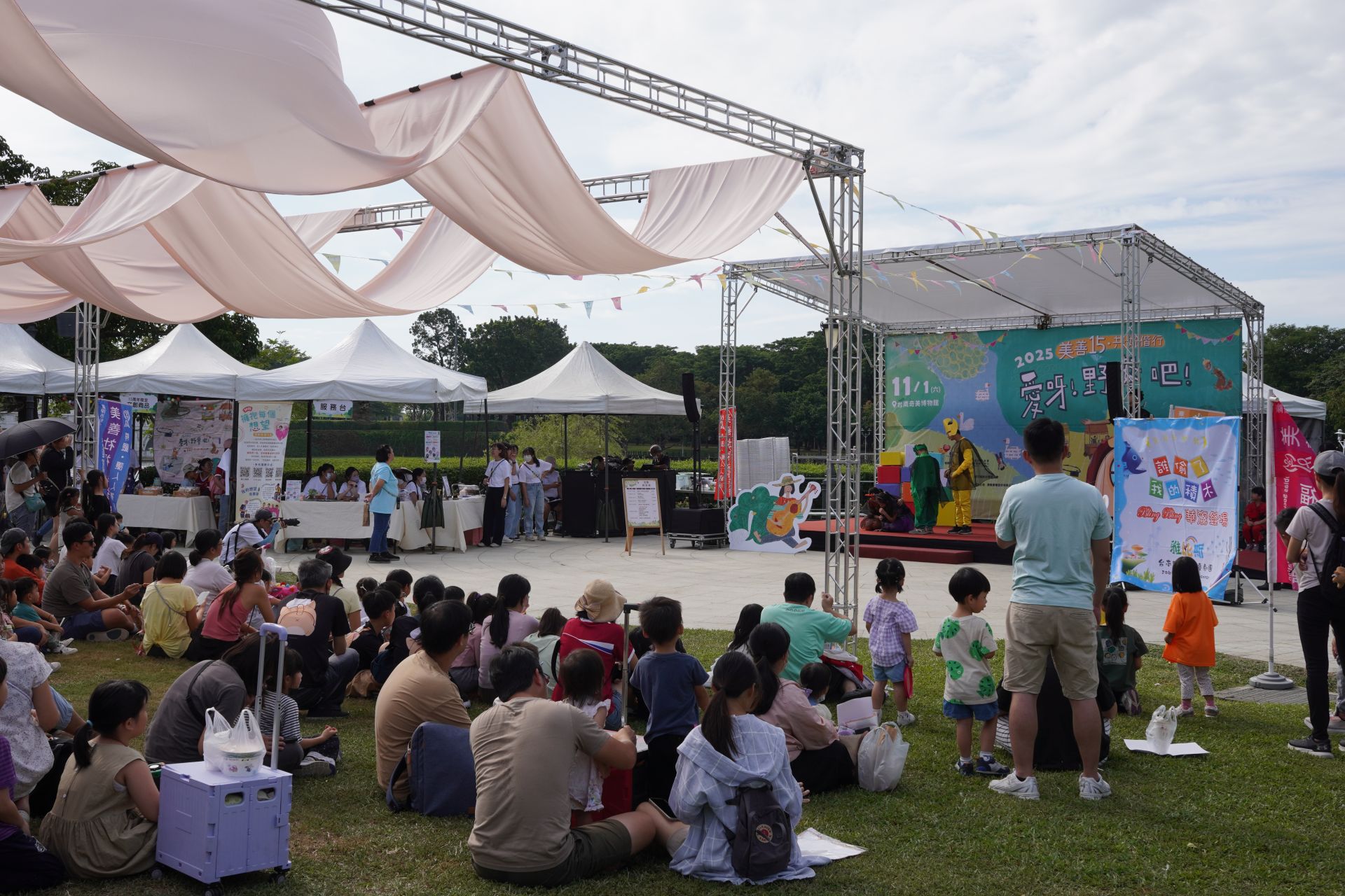 美善基金會成立15週年,於11月1日在奇美博物館舉辦「愛呀!野餐吧!」公益野餐活動,現場吸引上千位民眾熱情參與。當日陽光灑落,大小朋友們席地而坐,共度溫馨親子時光。