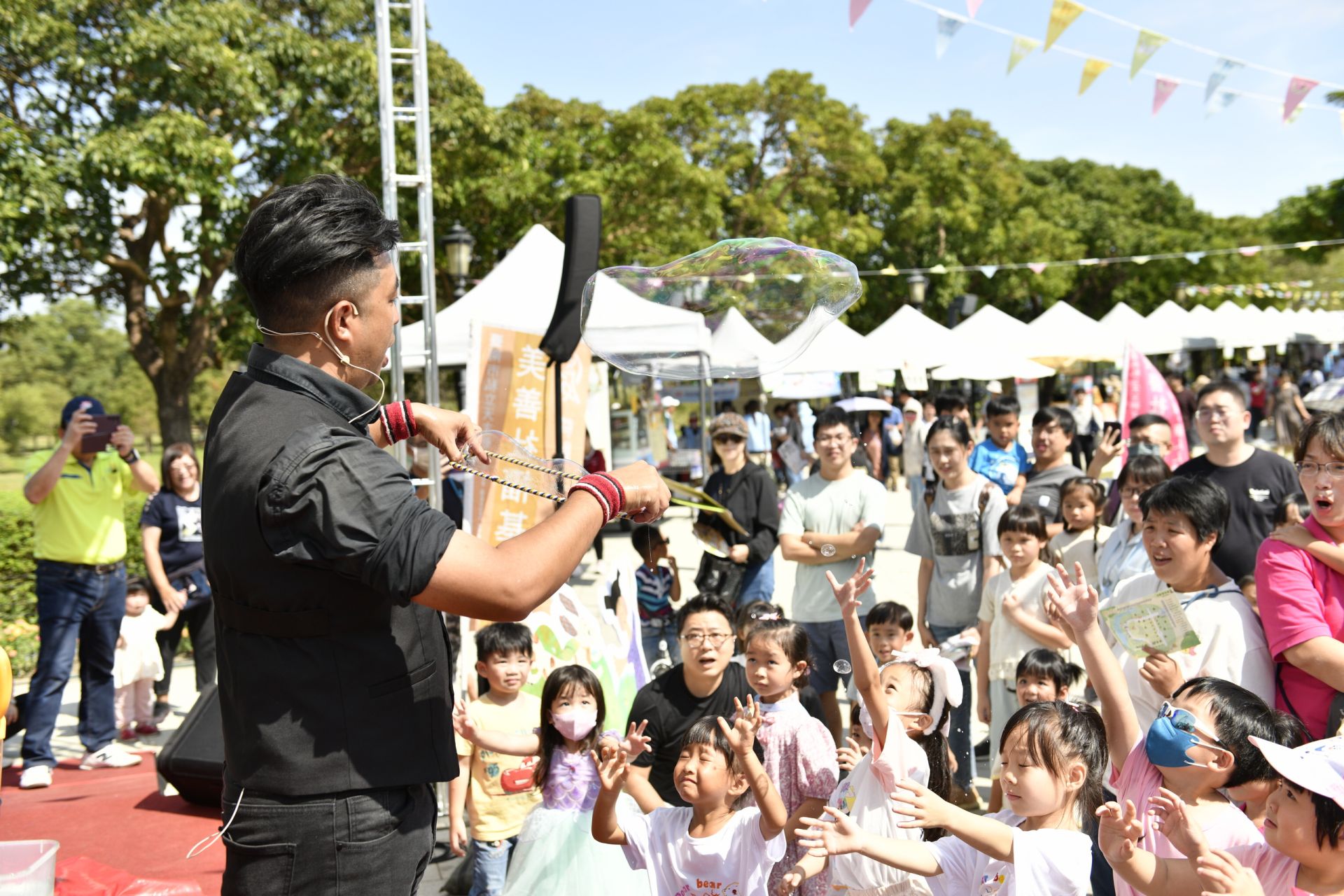 活動現場節目精采不間斷,美善光明早療幼兒班帶來可愛的音樂舞蹈表演,小作所的心智障礙青年及台江健身俱樂部長者也以活力滿滿的演出,展現勇氣與自信。另有泡泡達人、小丑魔術師與兒童劇團加入同樂,讓現場笑聲不斷。小老闆市集也在孩童們的吆喝聲中熱鬧滾滾,在互動與體驗中,透過愛物惜物為地球貢獻心力。