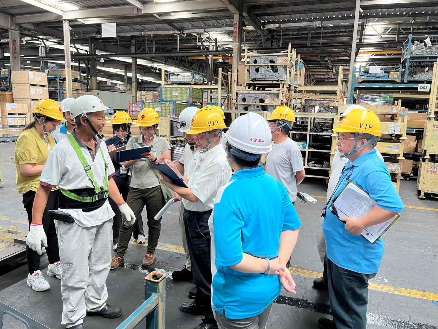 中高齡友善職場專家委員與裕隆汽車同仁,針對中高齡員工進行輔具導入評估
