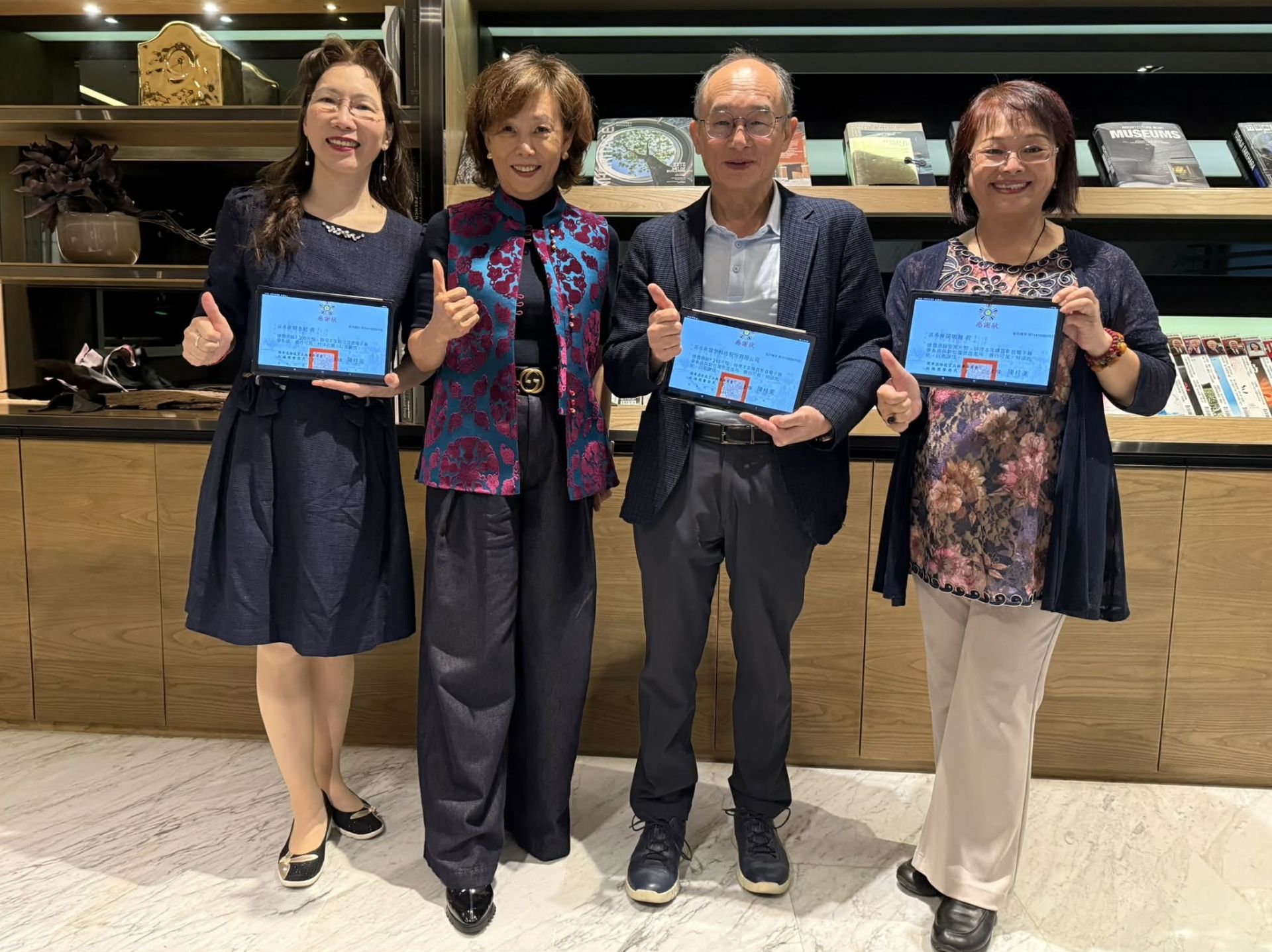 ▲板橋榮家陳桂美主任(左二)頒贈雲想科技公司負責人吳右任(右二)數位感謝狀。(圖/板橋榮家提供)