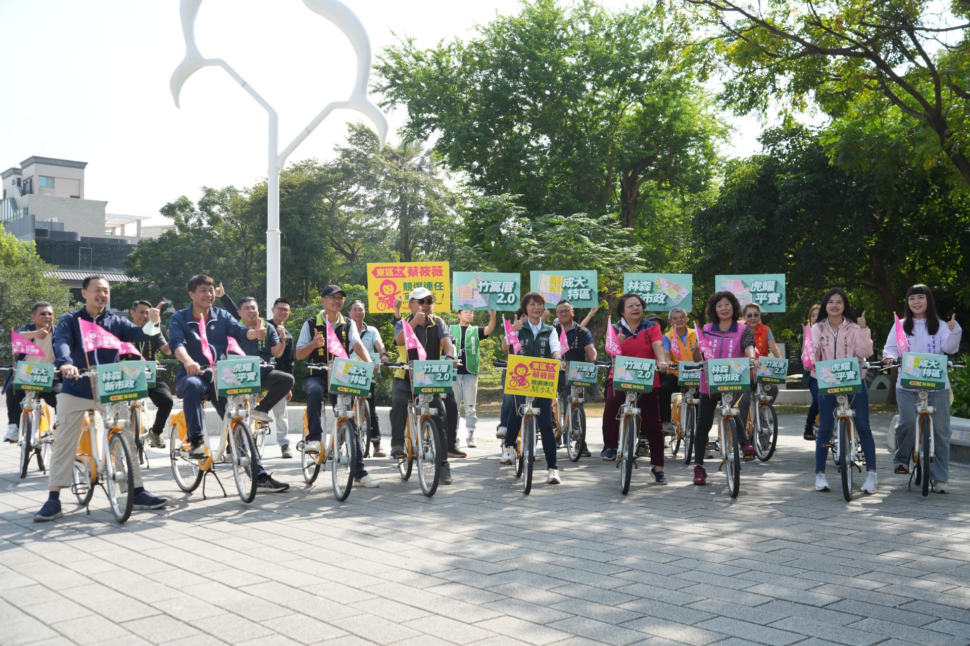 「東區PLUS+,騎步走」台南市東區議員蔡筱薇今(5)日於巴克禮公園正式宣布參選議員連任,並公布「東區PLUS+」四大區域願景藍圖,東區多位里長、地方人士與市民到場支持,同時齊呼口號「拚連任,推建設」,蔡筱薇表示,接下來將騎乘YOUBIKE深入東區,親自走訪基層、傾聽民意,將在實地調查基礎上規劃東區未來藍圖,務求政策貼近生活、落實執行。