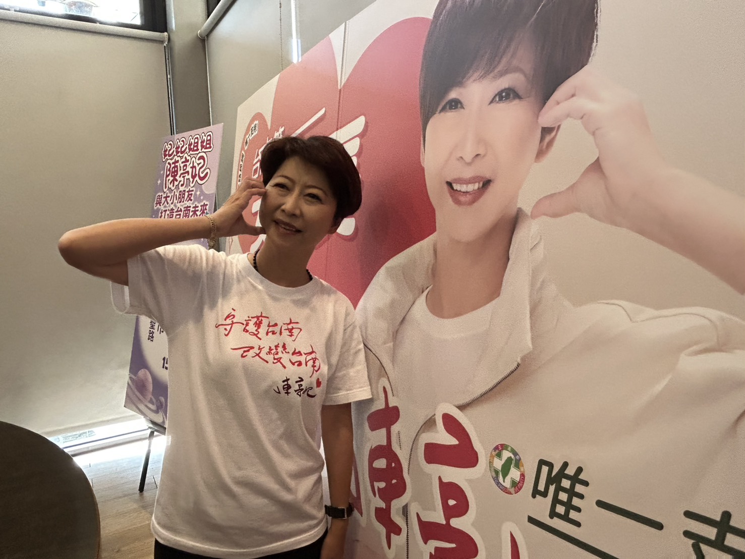 ▲立委陳亭妃參選臺南市長黨內初選,完全以柔性訴求,爭取選民支持。(記者黃雋淮 攝)