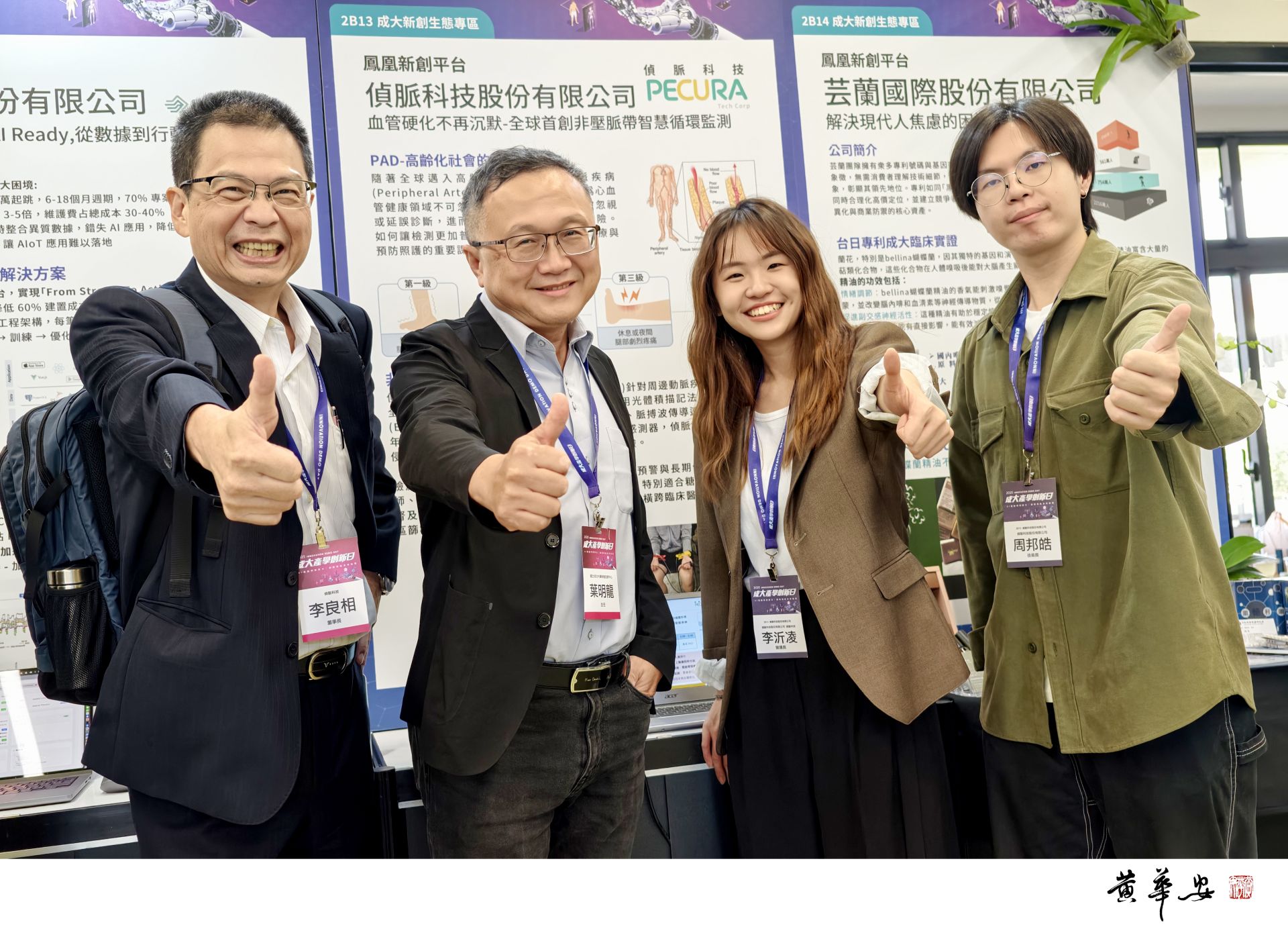 成大與校友共同推動的「鳳凰新創平台」,展示創新產品與商業模式,促成投資媒合,推動成大新創團隊邁向市場實踐,深獲各界好評。圖為葉明龍(右三)教授指導、執行長醫工系李沂凌(右二)領軍的偵脈科技股份有限公司。(圖/記者黃華安攝影)