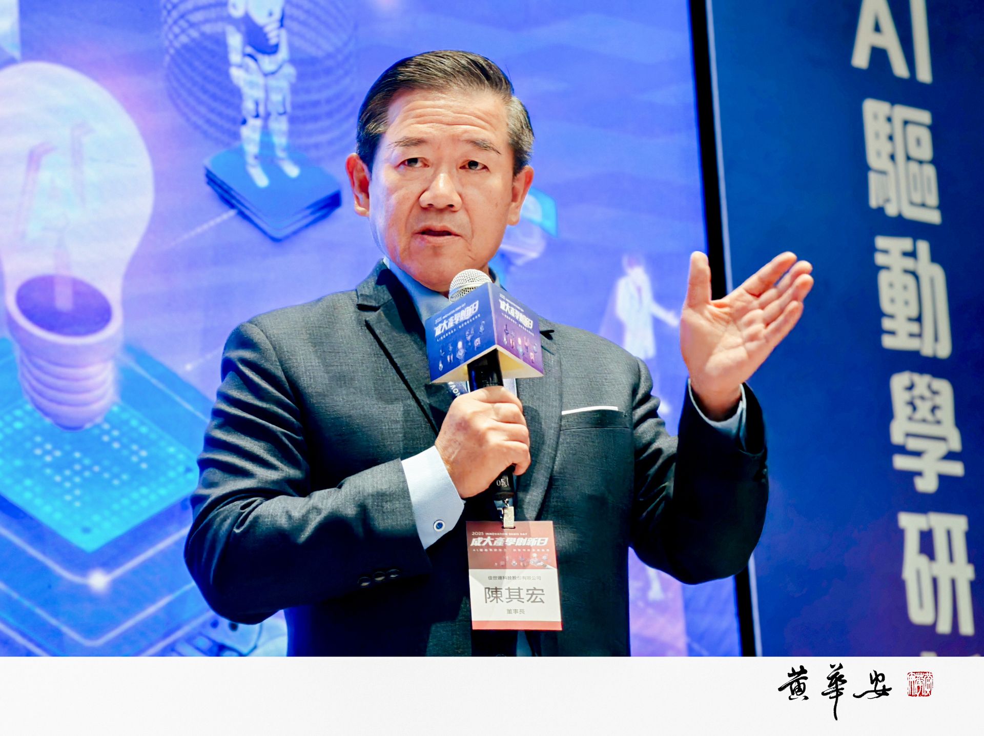 佳世達科技董事長陳其宏表示,將結合校友全球網絡與校內研發、新創平台,形成長期支持鏈;未來十年「半導體、AI、醫療」三大關鍵領域趨勢明確,期盼活動年年精進,讓世界看見台灣與成大。(圖/記者黃華安攝影)