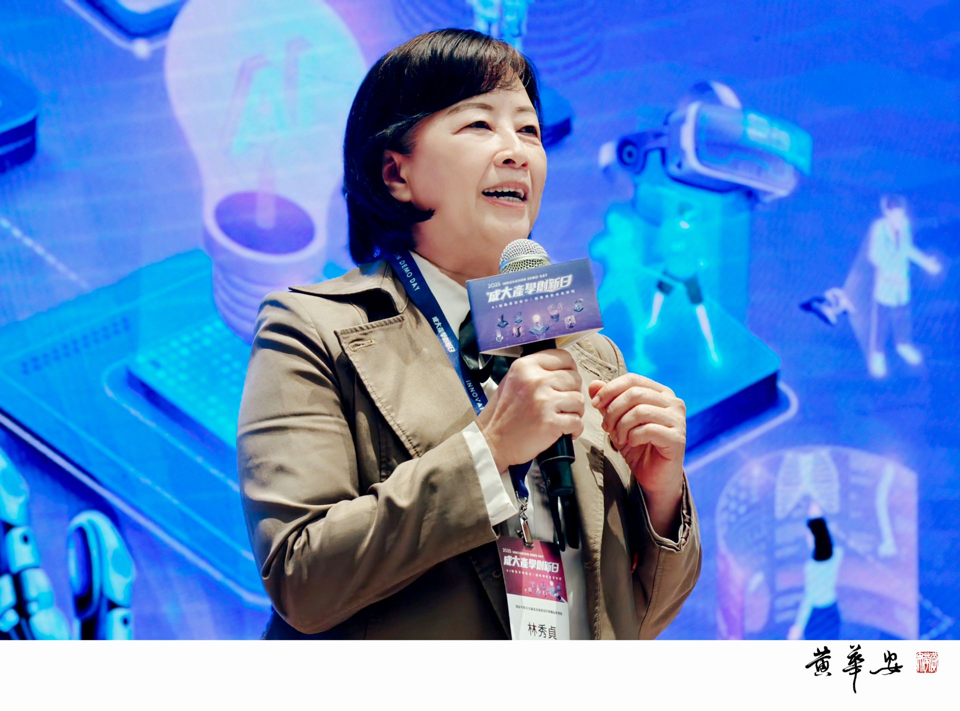 國科會南部科學園區管理局副局長林秀貞致詞表示,南科2023 年超越竹科、2024 年突破 2 兆元;並鼓勵新創團隊把握時機,申請進駐科學園區或與園區事業鏈結,視為實戰歷練基地,加速成長。(圖/記者黃華安攝影)
