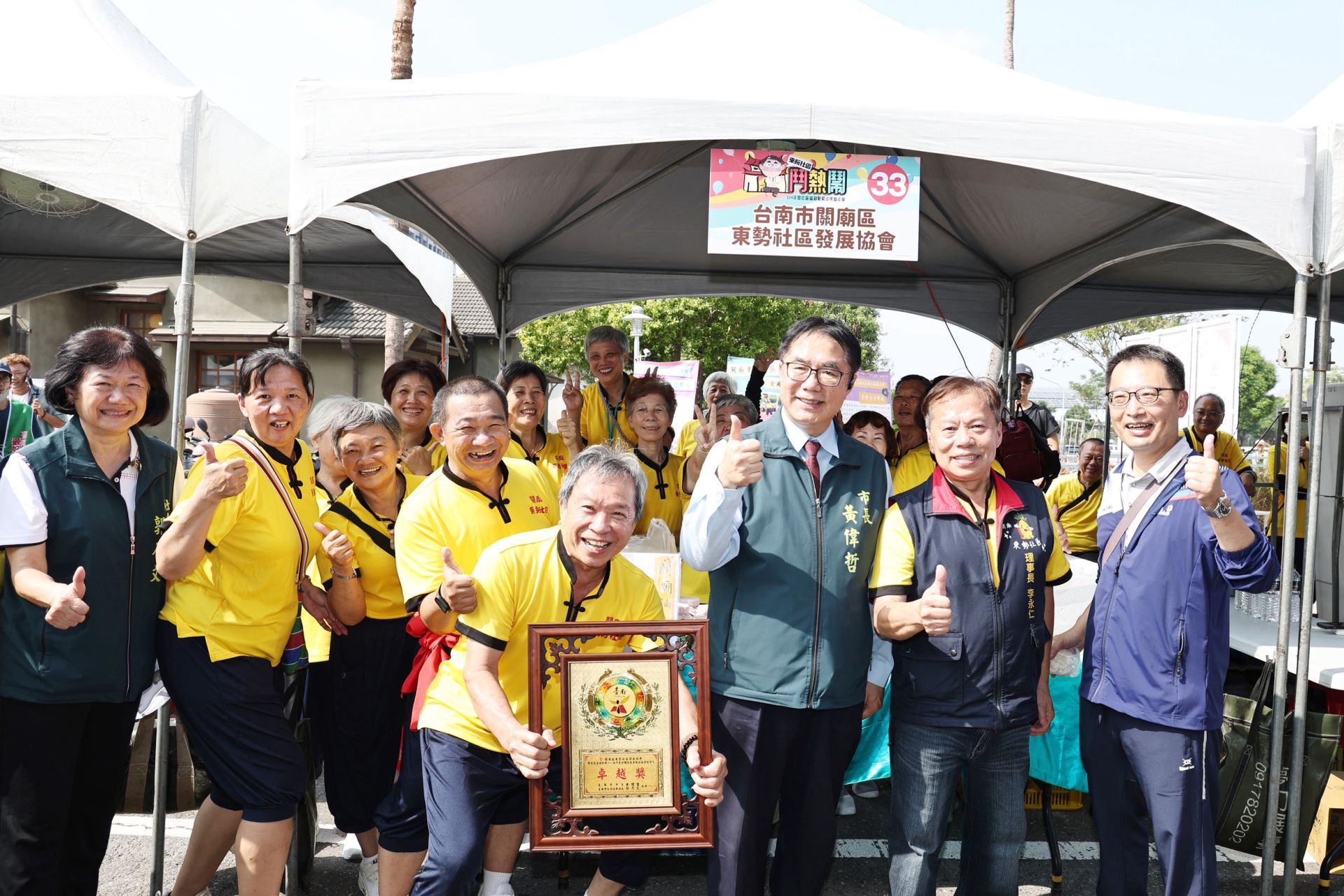 台南市政府社會局今(9)日上午在水交社文化園區舉辦「來阮社區鬥熱鬧-114年社區福利服務成果嘉年華」,邀集全市各區社區發展協會與社福團體共同展年度成果,現場透過互動體驗、手作DIY、展演、市集等多元活動,讓市民看見各社區在地特色與文化力。市長黃偉哲到場向所有社區夥伴與志工致謝,肯定大家長期投入社區營造與福利服務,強調市府將持續支持社區發展,讓台南成為更幸福宜居的城市,並頒獎表揚榮獲衛福部114年度「社區發展工作金卓越績優社區」的7個團隊。
