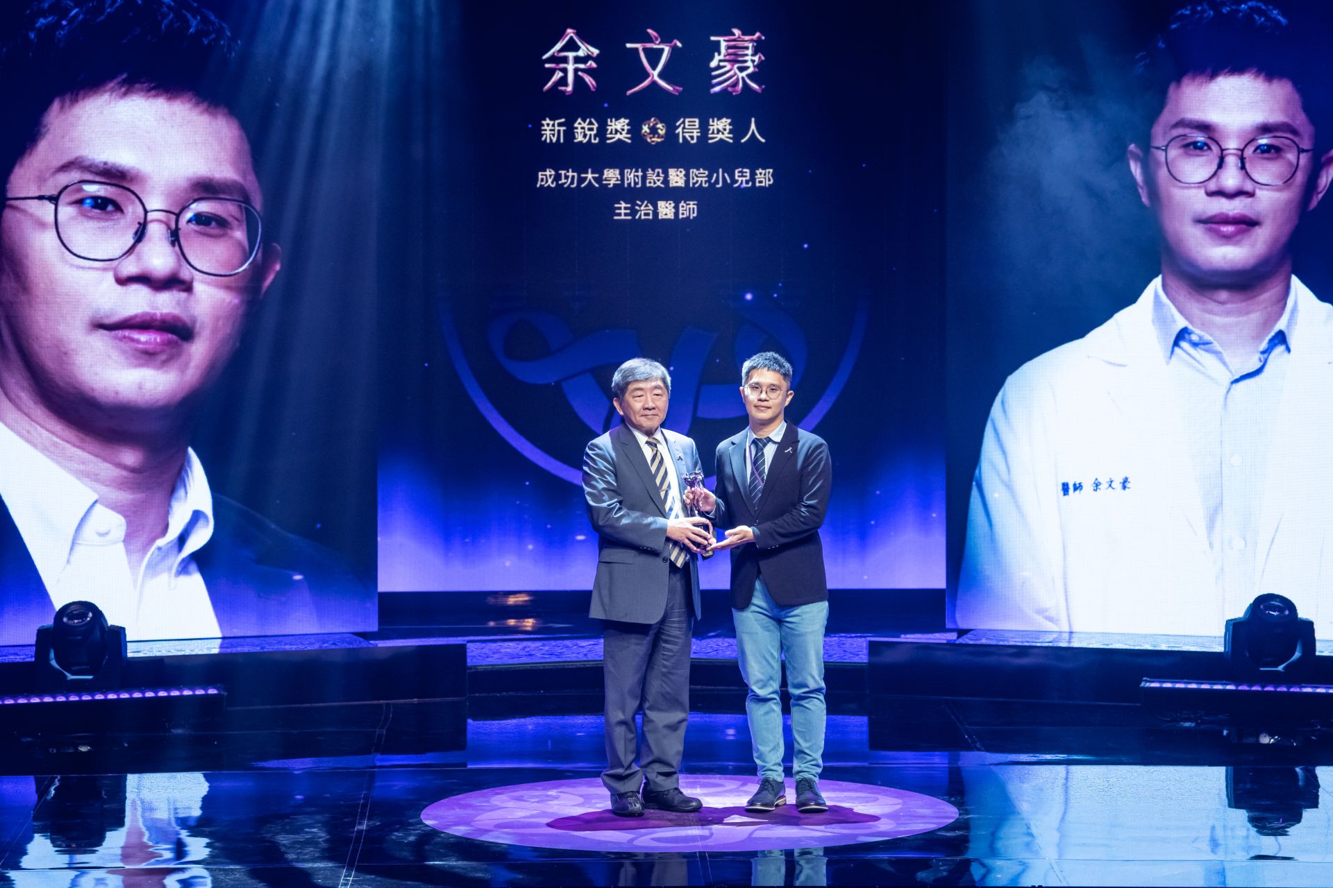 ▲成大醫院小兒部醫師余文豪(右)獲頒紫絲帶獎「新銳獎」。(圖/成大醫院提供)
