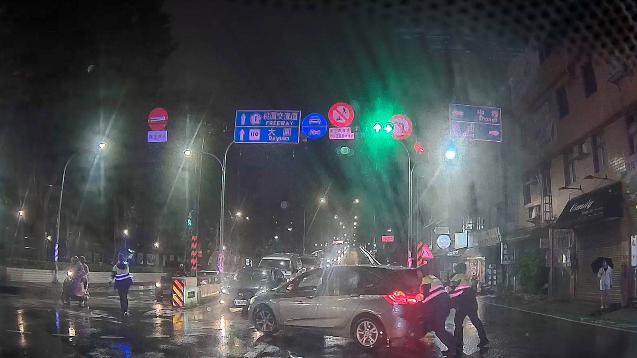 雨天卡路橋上進退維谷 桃警施援手排除障礙