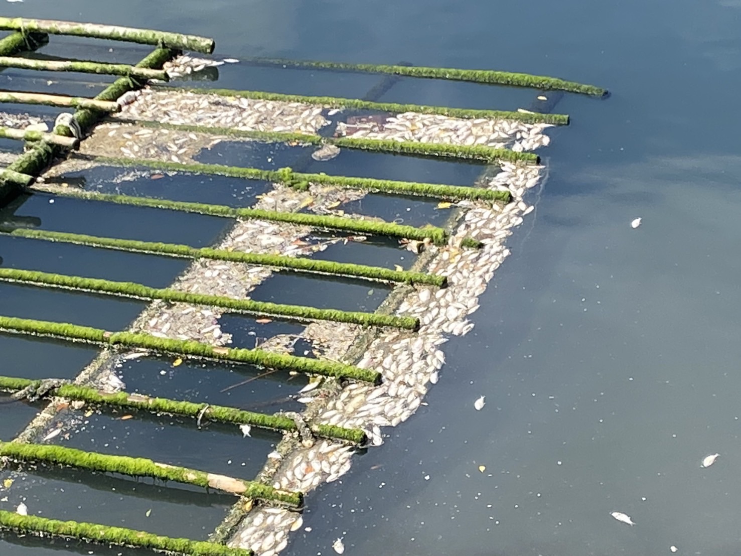 鳳凰颱風來襲下雨 安平運河又浮起魚屍