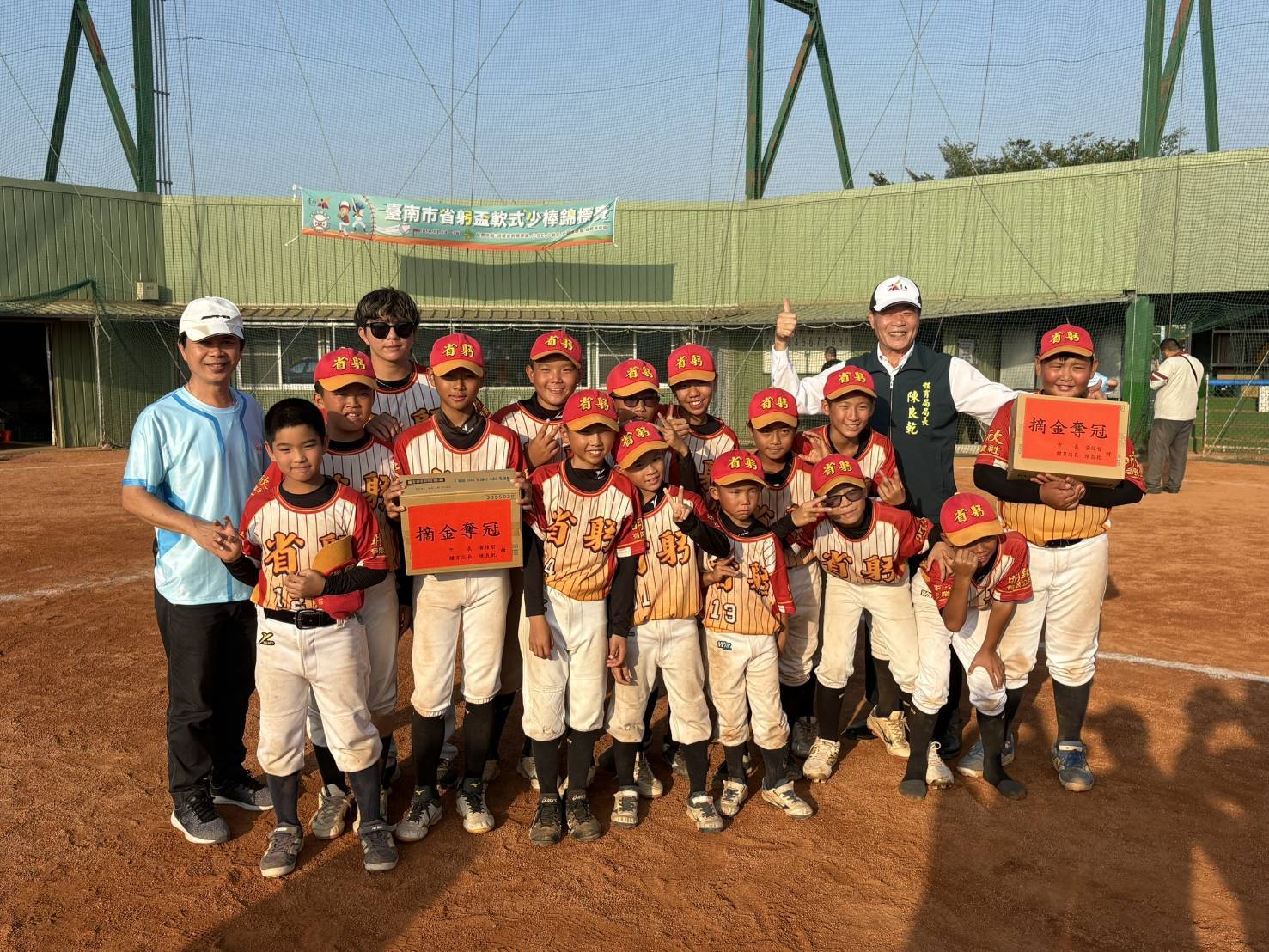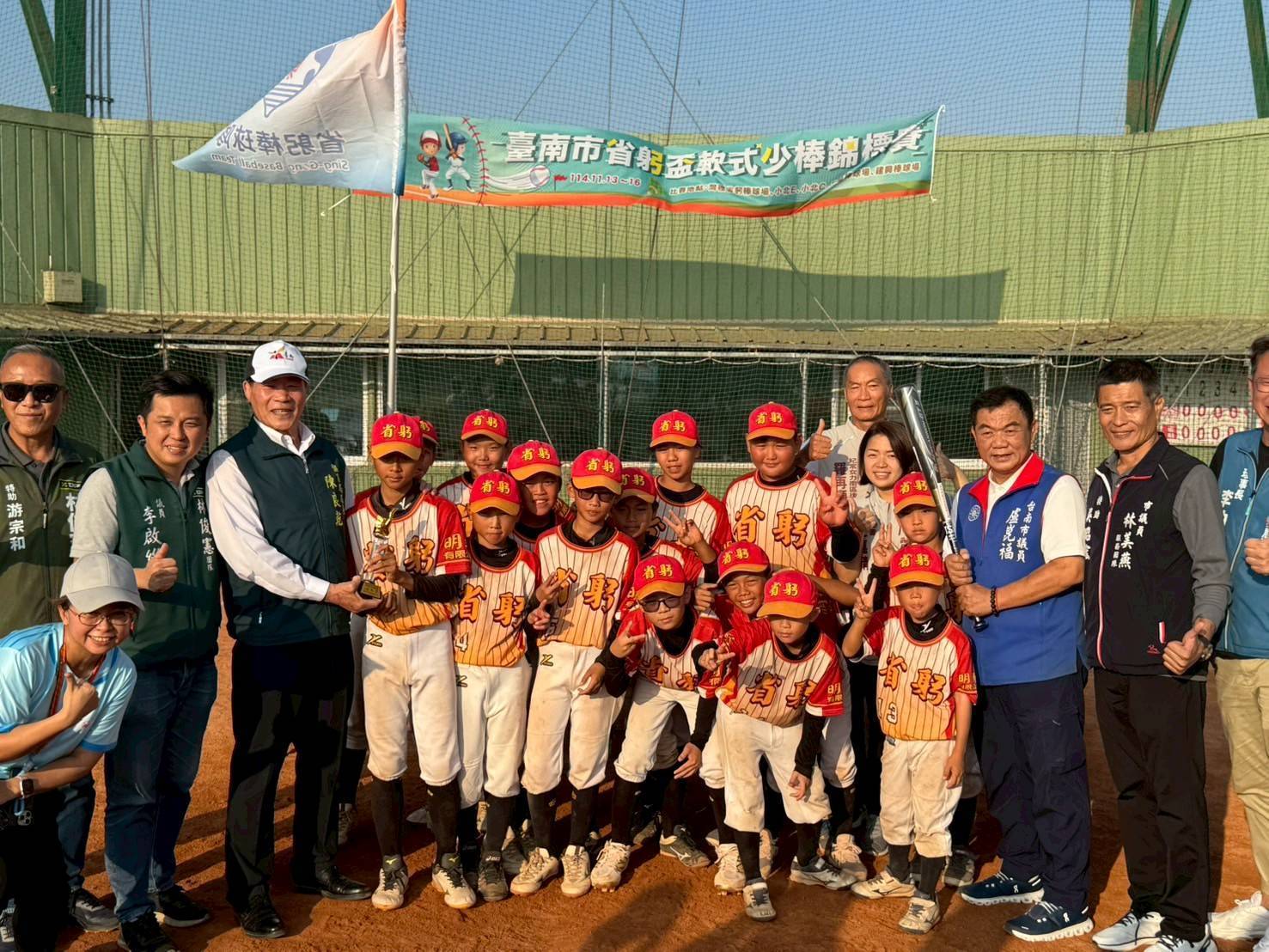 ▲臺南市政府體育局長陳良乾及貴賓與這屆賽事冠軍省躬國小棒球隊合影。(體育局 提供)