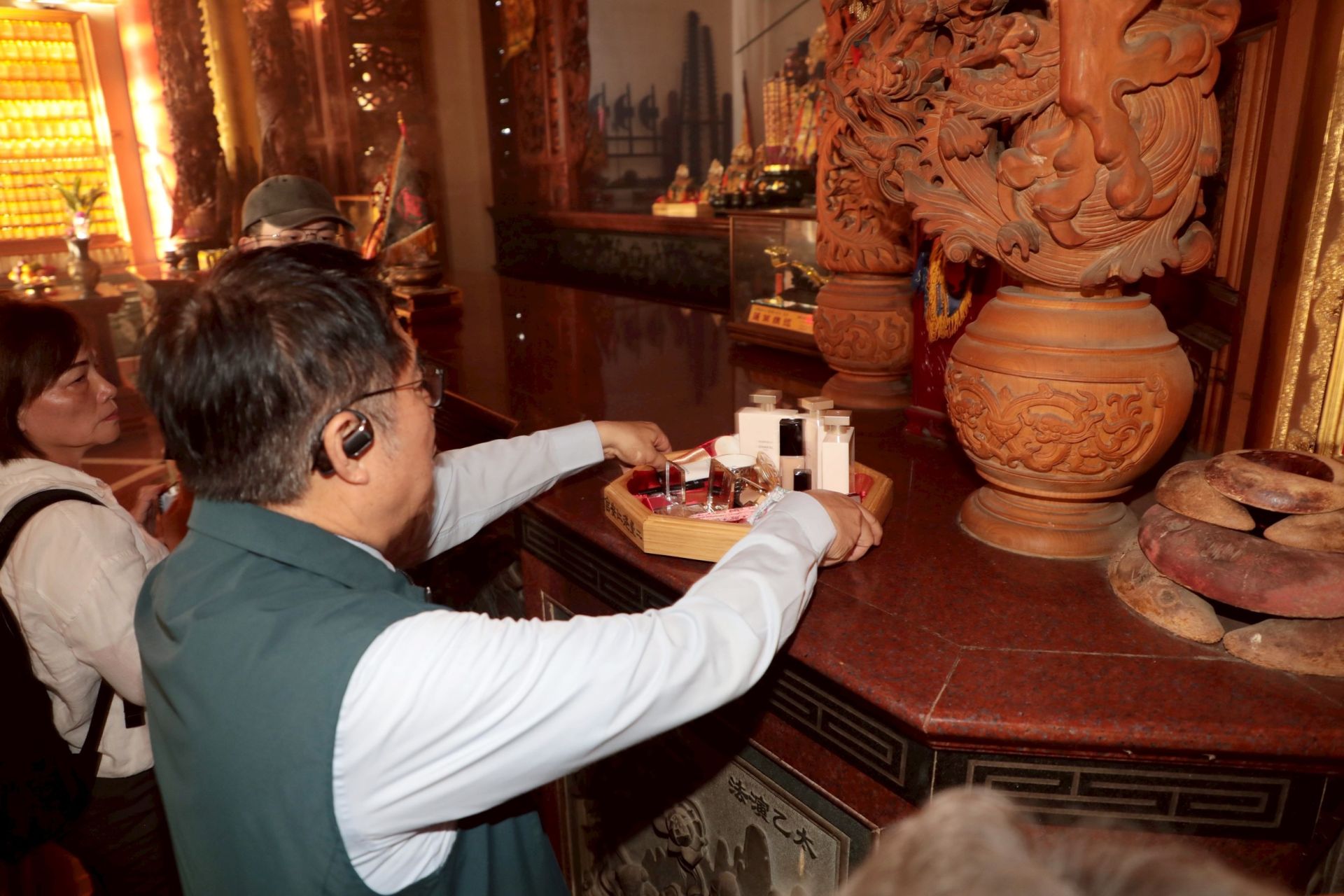 ▲市長黃偉哲於仁安宮虔誠奉香禮拜,祈求媽祖庇佑將軍、北門地區災後修復順利、合境平安。(記者黃雋淮 翻攝)