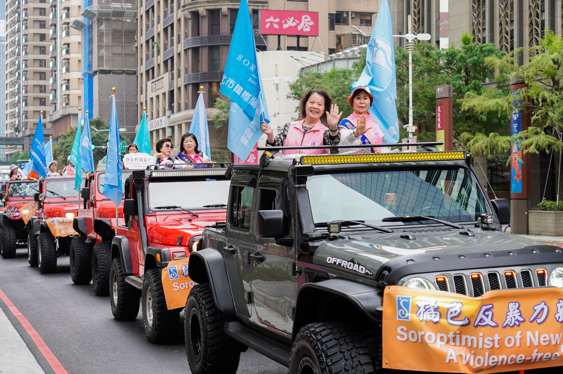 ▲響應「1125國際婦女受暴終止日」,新北市政府攜手新北市國際蘭馨交流協會以車隊遊行行。(圖/新北市社會局提供)