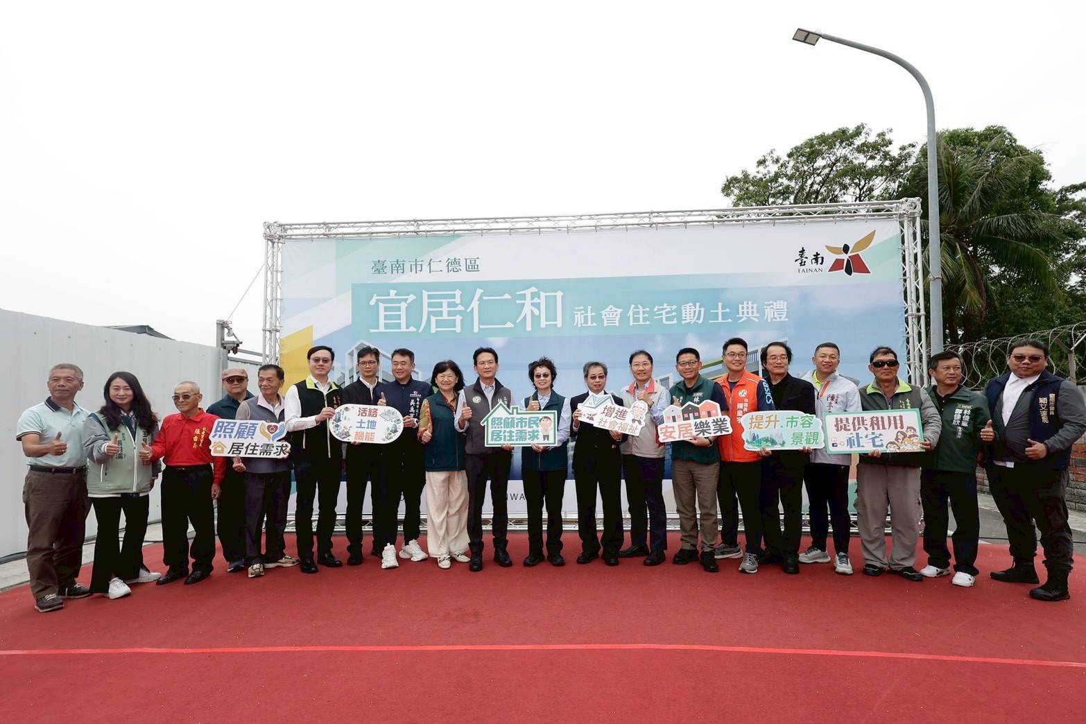 臺南市推動公辦都市更新再添新進展!位於仁德區二空新村B區的「宜居仁和社會住宅」於今(27)日舉行動土典禮,由副市長趙卿惠主持、中央及地方多位民代共同出席祈福,此案為二空新村地區第二期社宅工程,亦為台南市第5案動土之公辦都更案,全案透過都市更新共可節省公帑約9.15億元,基地鄰近學校、公園及停車場等公設用地,生活機能完善,未來將提供170戶社會住宅並設置托嬰中心等社福設施,象徵社宅推動從量的累積邁向質的創新,為市府落實居住正義與區域均衡發展的重要里程碑,亦將為仁德地區帶來新型態的共融宜居生活。