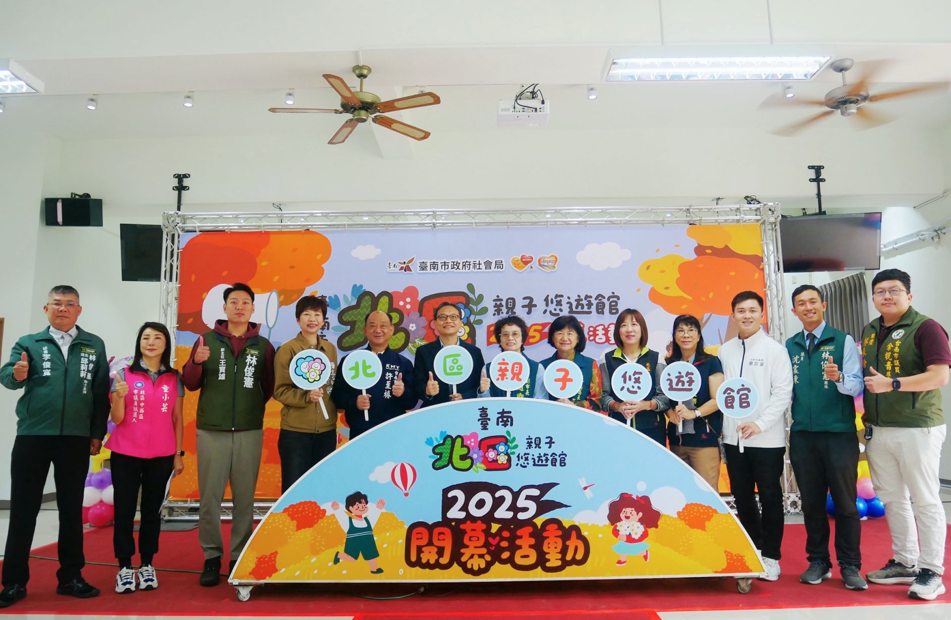 為持續強化南市育兒支持網絡、營造友善家庭環境,臺南市政府社會局運用北區大和里活動中心三樓空間,設置全市第13處親子悠遊館—「北區親子悠遊館」,並於今(27)日正式啟用。活動由副巿長趙卿惠代表市長黃偉哲主持,社會局長郭乃文、地方民意代表及社區家長共同出席,現場氣氛熱絡。北區親子悠遊館以「園藝」為主題,結合自然綠意與教育理念,打造具生命力的親子共學場域,象徵親職教育與陪伴成長的美好歷程。北區區長潘寶淑、北區大和里里長陳美惠、巿議員許至椿、陳怡珍、蔡宗豪、沈震東本人、立法委員林俊憲、陳亭妃、謝龍介、議長邱莉莉、巿議員余柷青等服務處代表、崑山科技大學副校長鐘俊顏及學校社福團體代表亦到場參與。