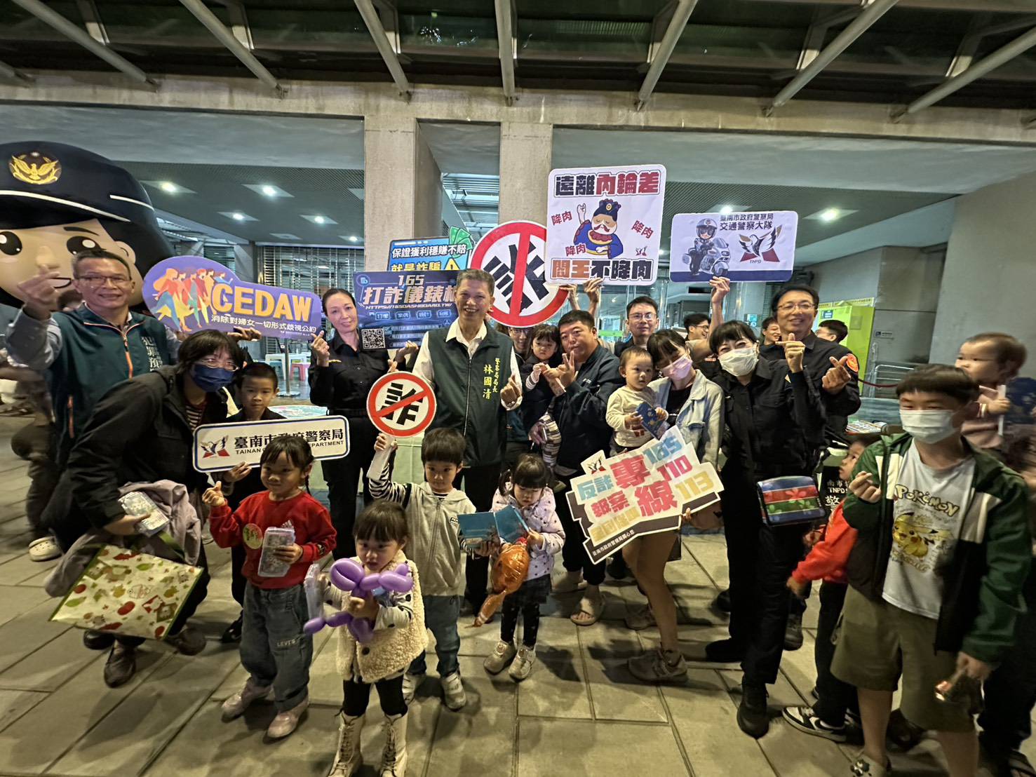 南市警局結合民治市政中心聖誕點燈活動 設置小小警察體驗及防詐宣導攤位 持續強力放送防詐資訊