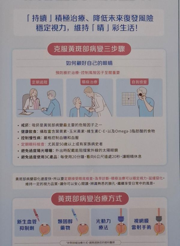 臺灣於2025年正式邁入超高齡社會,根據統計,每10位65歲以上長者就有1人罹患年齡相關性黃斑部病變,此疾病更是50歲以上族群失明的主要原因。然而亞太視力調查顯示,仍有逾四分之一民眾對此嚴重危害視力的疾病認識不足。
