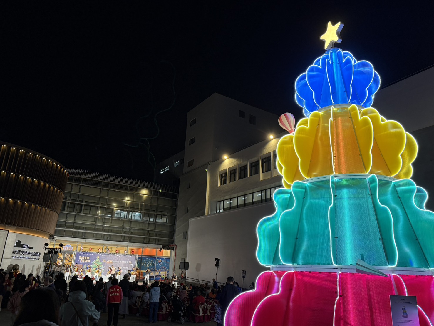 「2025台南聖誕燈節-新營文化中心暨綠川廊道燈區」昨(6)日晚間正式點燈,由副市長葉澤山代表主持點燈儀式,偕同天主教台南教區總鐸長梁承恩神父、觀光旅遊局局長林國華、市議員蔡育輝伉儷、王宣貿、沈家鳳、李宗翰議員服務處、立委賴惠員、陳亭妃、林俊憲服務處代表等貴賓,一起點亮聖誕樹,與市民及現場教友歡慶聖誕佳節即將到來。系列活動自下午2點開始,有聖誕甜蜜市集和愛心義賣攤位吸引大小朋友前往挑選聖誕小禮品;晚會表演於17點30分展開,由天主教台南教區規劃精彩歌舞演出。眾所期待的聖誕樹亮燈儀式於18點30分正式啟燈,在眾人齊心倒數中,點亮新營文化中心廣場上的聖誕樹及兩旁的綠川水岸廊道,充滿聖誕佳節溫馨氛圍與滿滿平安祝福。