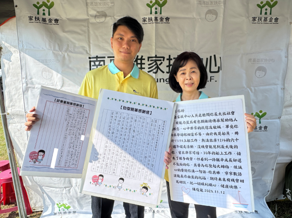 扶幼主委莊月珠表示,勁傑的故事是南高雄家扶1萬名自立青年的縮影。南高雄家扶在地深耕已60年,長年關注在家庭扶助、兒童保護、寄養安置、社區服務、心創復原、青少年據點等多元專業服務,至今總共服務逾27647人,60年來在社工、志工、捐款人、認養人、企業等支持陪伴下成長,與孩子走過貧困、創傷與生命中的困境,也見證無數孩子在社會溫暖的愛中茁壯。各界投入的每一份力量,用實際行動守護,都成為孩子人生轉折的起點,為孩子帶來改變的力量。南高雄家扶60歲是另一段旅程的起點,家扶將秉持初衷繼續攜手「用愛守護 希望童行」,成為孩子生命中最堅定的後盾,邁向下一個60年。