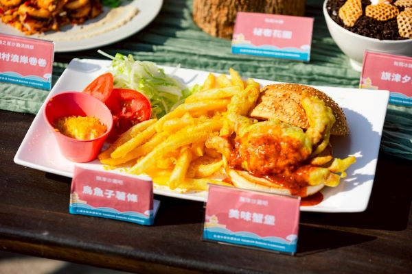 本次發表的創意料理令人驚艷,「鴨角活海產」推出「老菜脯煨鮮魚」,以陳年老菜脯與現流鮮魚煨煮,展現鑊氣與古早味;「來溫叨呷奔」的「乾煎海鱺魚」佐以柑橘味噌醬,細緻呈現食材本味。「怕燙食驗室」打造視覺搶眼的竹炭「黑沙蝦蝦生菜堡」;「大碗公冰甜品」則有30倍大的「海鹽奶茶粉粿大碗公冰」,鹹甜交織。「有間冰舖」以夕陽意象推出兩款創意冰品;老店「斗六冰城2號店」獻上濃郁的「巧克力冰淇淋蛋糕」。鹹食點心方面,「海之星沙灘俱樂部」的「旗津村浪岸卷卷」酥脆如浪花;「旗津道沙灘酒店」端出「旗津人的魚」及「避風港」兩道海味;「旗津沙灘吧」則豪邁使用軟殼蟹與烏魚子製作漢堡與薯條。「島民烘焙」選用海鹽製作「津凰餅」;「船說」則創新推出結合XO醬與堅果的「XO三鮮堅果塔」,每道料理都極具旗津風土特色。