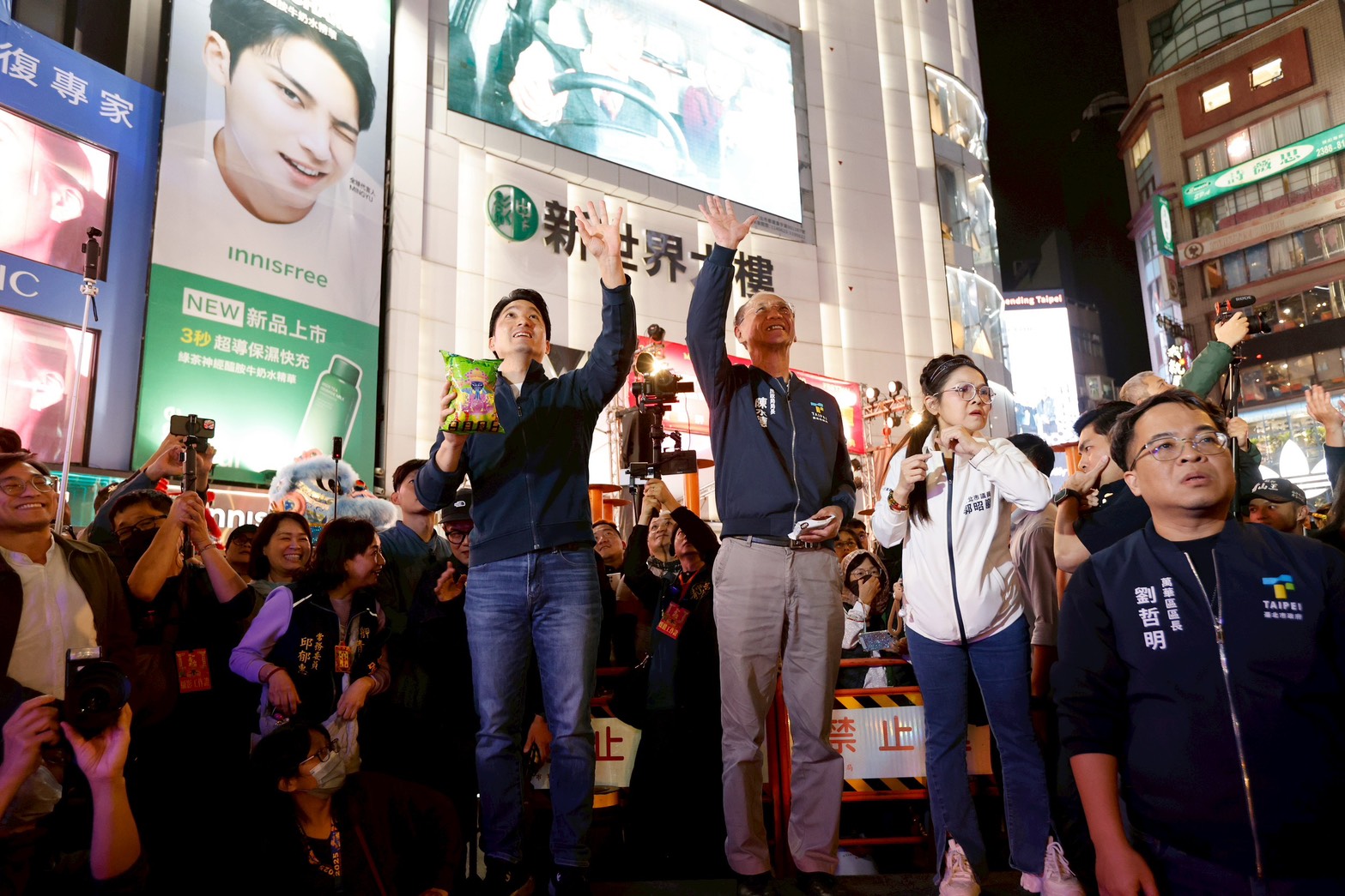 晚會期間,蔣萬安與現場民眾一同欣賞「真人藝閣車」隊伍進場。他笑說今年沒有機會親自登上藝閣車,主持人則幽默回應市長「超齡也超重」,讓現場笑聲此起彼落,增添了節慶的親切與熱鬧。