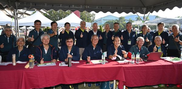 圖2:黃建智董事長(後排左5)、陳守道總經理(後排左4)及行政部門黃一中副總經理(後排右2)與蒞臨廠慶同歡的退休同仁們合影。