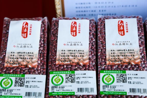 陳其邁指出,大寮紅豆品質優良,無論製作冰品或紅豆餅等甜點都相當合適,過去常作為伴手禮致贈總統府、行政院及中央各部會等,藉此行銷高雄優質農產。今年更與百年品牌舊振南合作,推出「紅蜜紅豆費南雪」,為在地農產創造多元加值。
