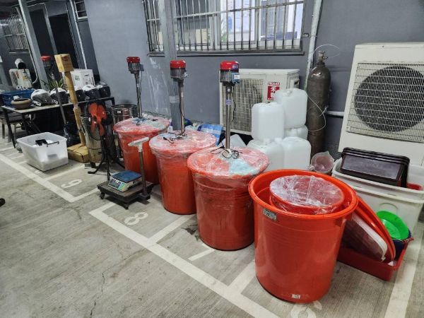 經專案小組多日蒐證追查,於12月13日13時許見時機成熟,立即動員大批警力前往查緝,當場查獲辛男(約40歲)、李男(約27歲)及顏男(約27歲)等3名犯嫌涉案,現場查扣製毒工具一批及喵喵成品逾47公斤、半成品300公斤,市值估計逾億元。