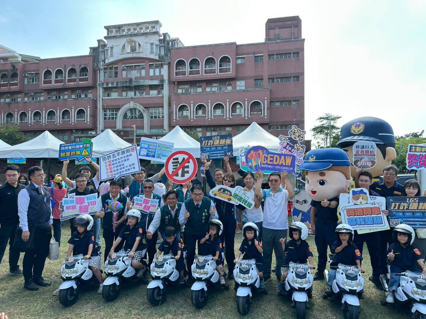 ▲黃市長走入親子童樂會,寓教於樂深化犯罪預防宣導。(警察局 提供)