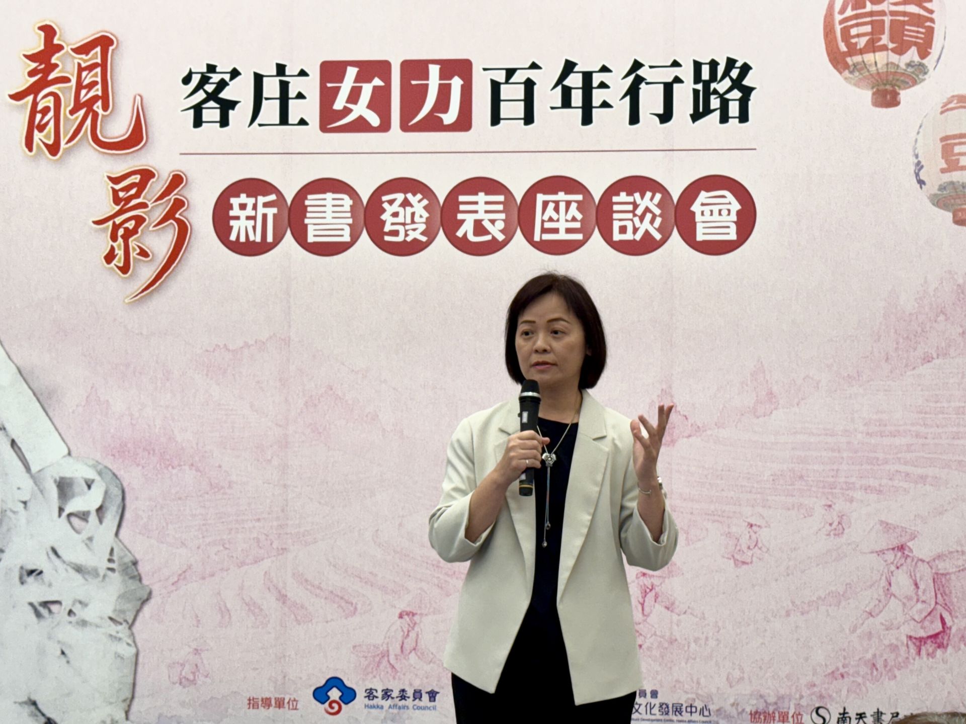 客家委員會客家文化發展中心今(18)日於臺灣客家文化館舉辦《靚影:客庄女力百年行路》新書發表座談會,邀集作者國立中央大學姜貞吟教授,以及作家張典婉、紀錄片導演鄭慧玲與美濃「有間書店」創辦人朱毓萍,從歷史、文化與當代社會角度,共同探討百年來客家女性的生命軌跡與行動智慧。