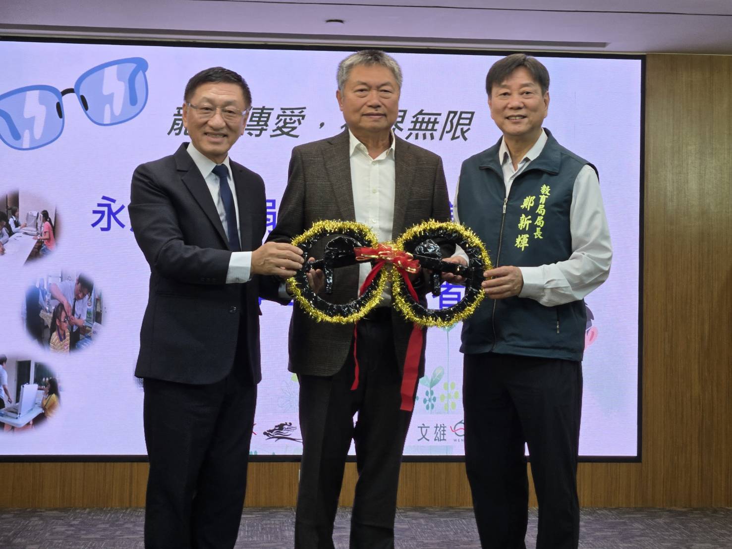 學童視力健康是教育發展的重要基石,臺南市政府持續結合民間資源推動護眼行動,攜手永龍建設公司與文雄眼鏡,共同延續經濟弱勢學童免費配鏡公益計畫。今(24)日於永華市政中心舉辦捐贈感謝儀式,由教育局長鄭新輝代表市長黃偉哲致贈感謝狀,感謝企業長期投入學童視力照護,落實企業社會責任。