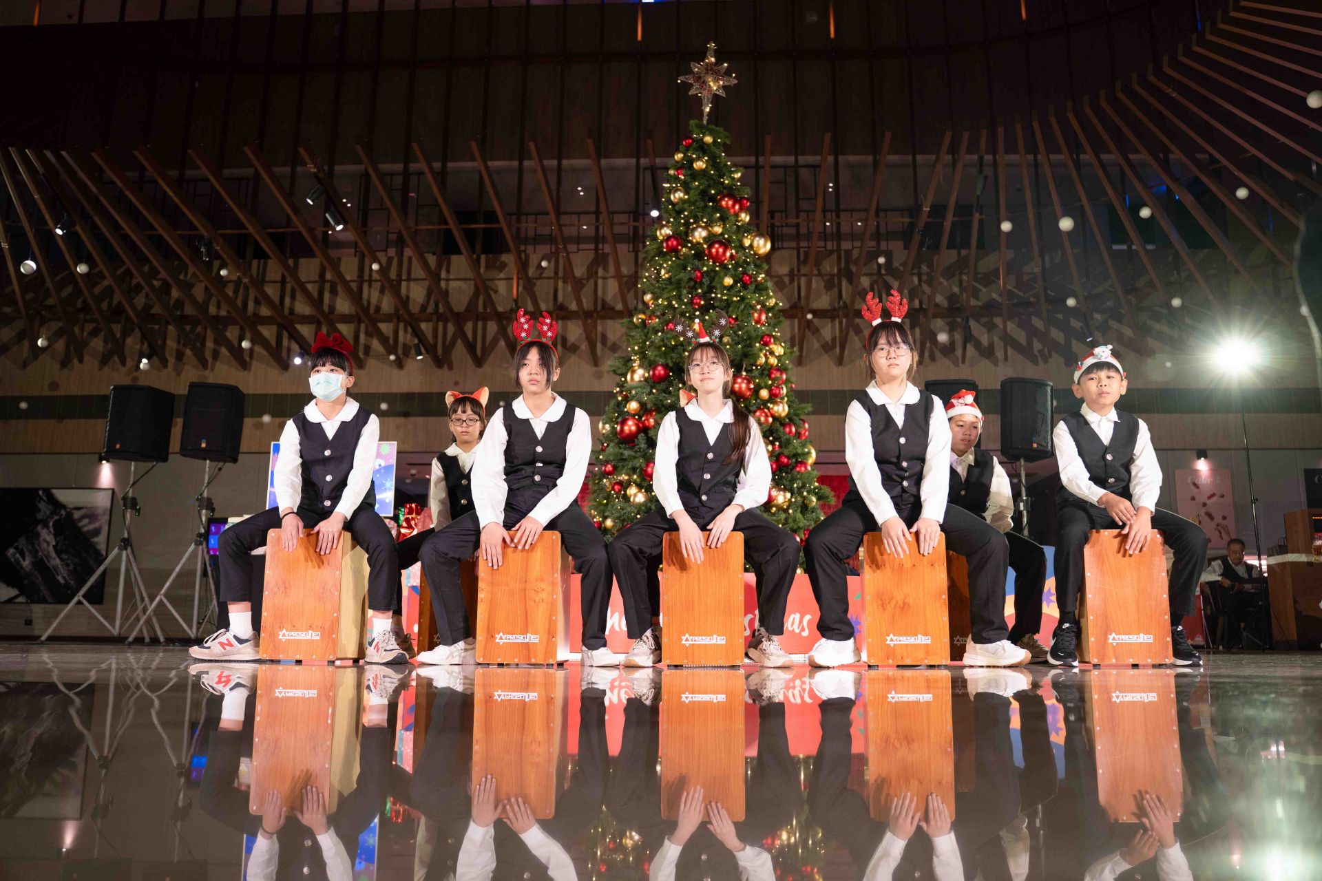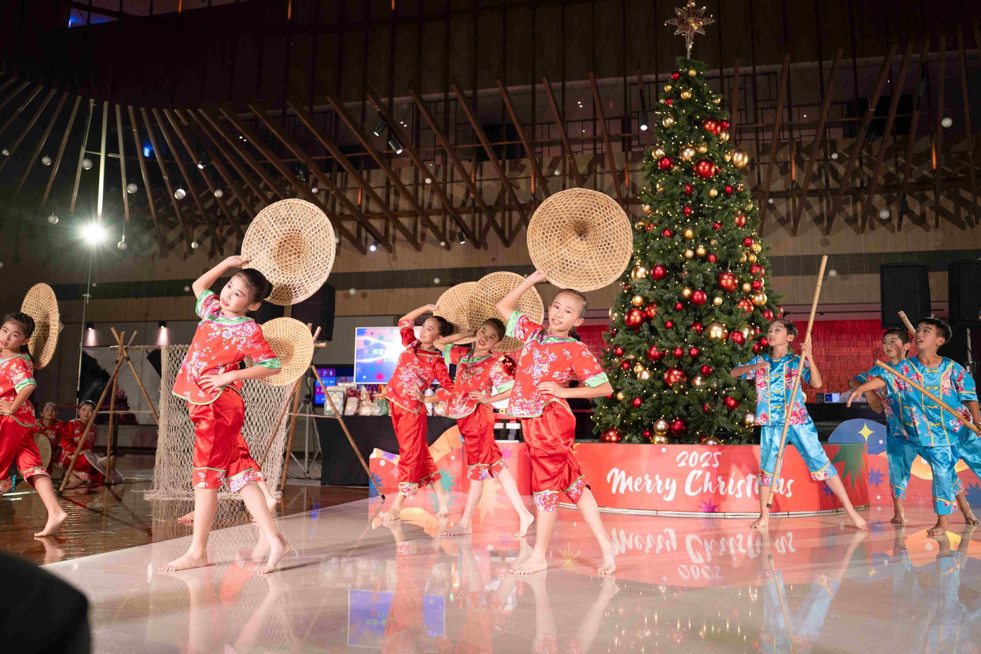 今年平安夜活動於酒店大廳溫馨登場,現場首先由去年圓夢學校 北門國小 的孩子們帶來節奏明快的木箱鼓演出,為活動揭開熱鬧序幕;隨後登場的,則是今年圓夢學校長平國小 的民俗舞蹈演出,孩子們以整齊而充滿情感的舞步,展現長時間練習的成果,此次長平國小所帶來的民俗舞蹈演出,正是學校長期深耕藝術教育的成果展現。