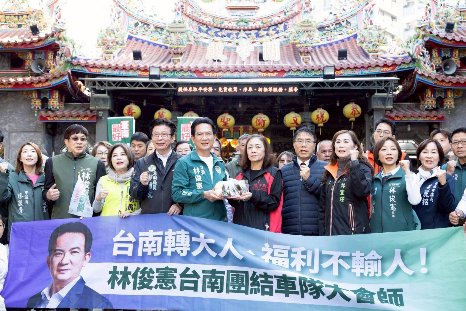 在車隊大會師的現場,關帝殿的許主委及幹部現身,送上包子與粽子表達支持。林俊憲與三位立委,林志展副議長團隊及黃麗招、蔡麗青、朱正軒、黃肇輝、沈震東、李啟維、李宗霖、蔡筱薇、郭鴻儀等多位市議員,在縣市合併即將滿16年之際,以「做十六歲」的台南傳統,共同喊出「台南轉大人、福利不輸人」。希望以六都首創的長輩免費接種皮蛇疫苗、學童午餐牛乳多一杯等政見,未來將打造台南成為六都社福第一的城市。
