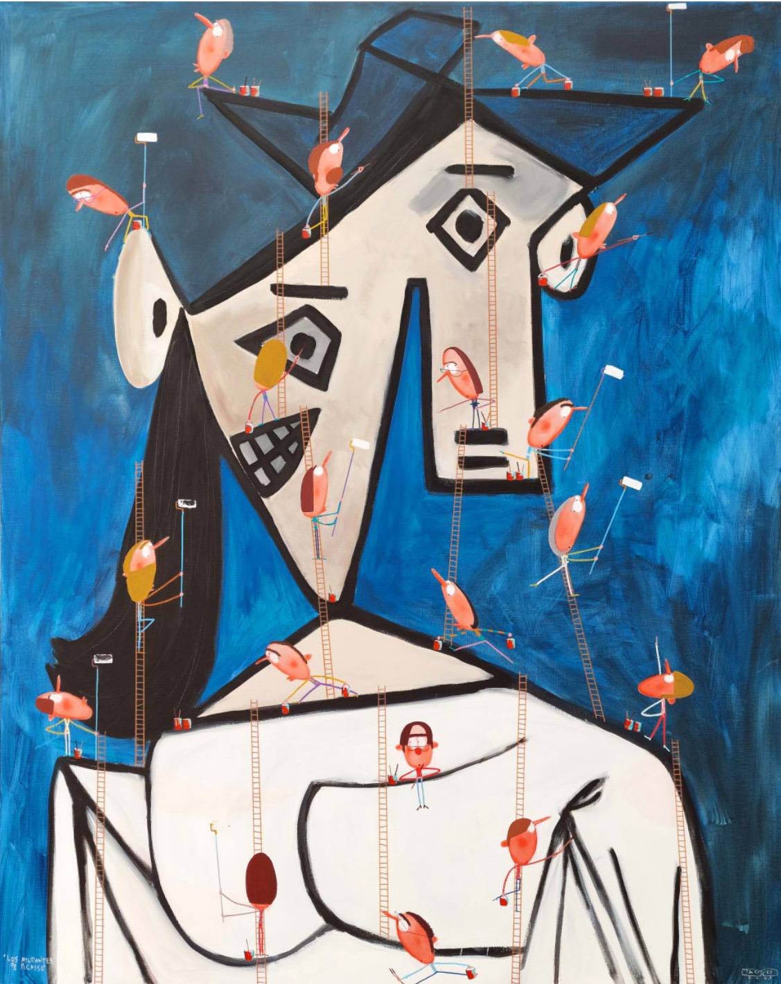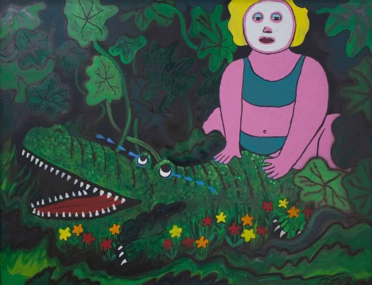 展場中,甘蔗 Cane 的〈生日派對〉以熱鬧卻略帶失序的場景,描繪人際關係中微妙的張力;莫伊 Moisés Yagües 透過〈畢卡索的助手們〉,將目光投向創作背後的心理狀態與被忽略的角色;杜信穎的〈騎鱷魚嬉戲的夢露〉,則以幽默荒謬的畫面,讓經典形象回到日常,映照我們自身的脆弱與真實。每一件作品,都是通往夢境的不同入口。