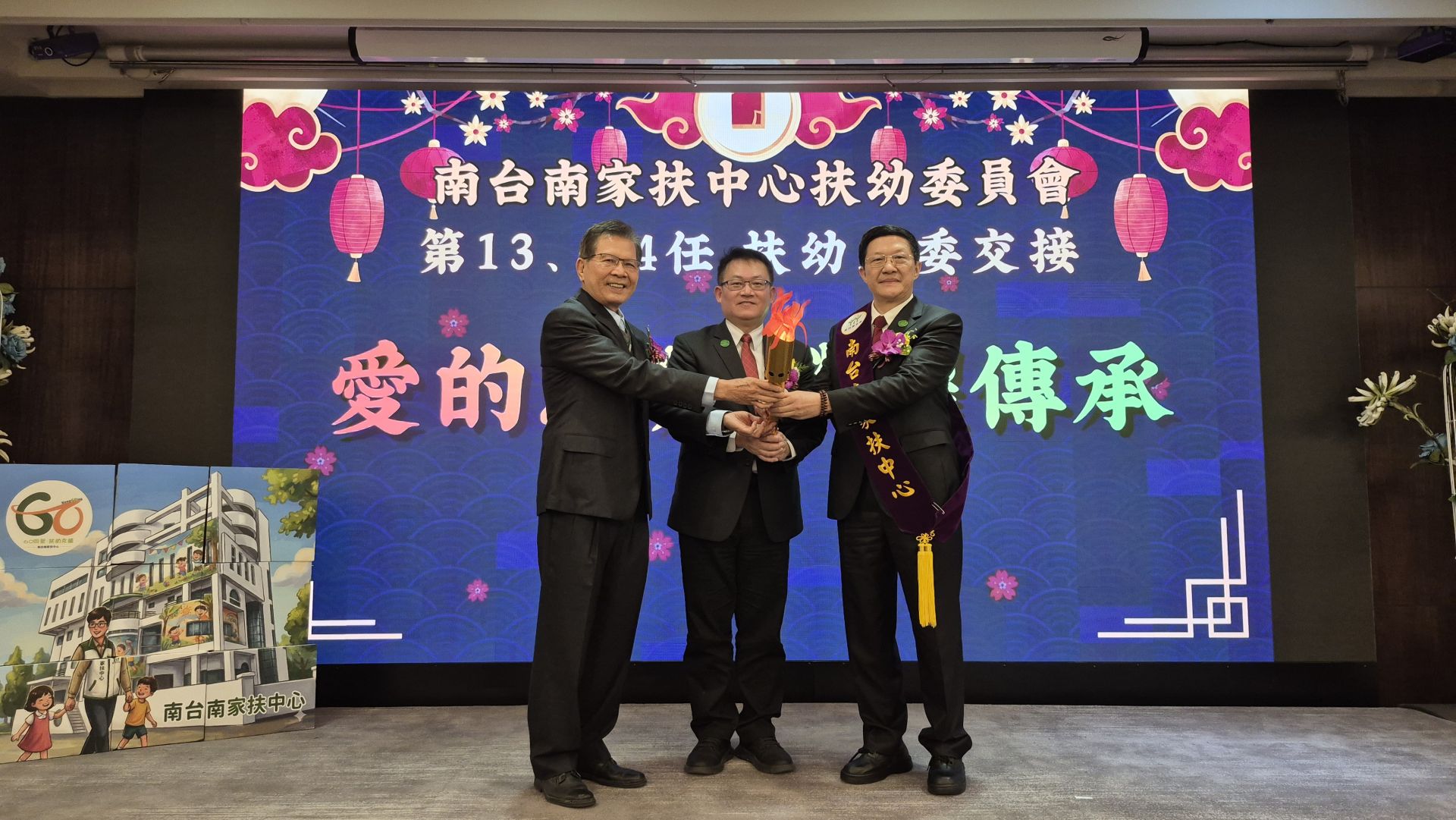 ▲南台南家扶後援團體「扶幼委員會」扶幼主委交接,在總會周大堯執行長(中)監交下,由卸任主委康登春(左)交接給新任主委楊政達(右) ,完成家扶愛的志業傳承。(圖/南台南家扶提供)
