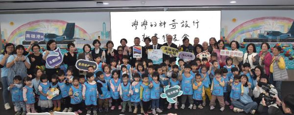 2.高雄港旅運中心兒童繪本「灣灣的神奇旅行」新書發表會,與會貴賓與高雄港教保中心師生一起合影。