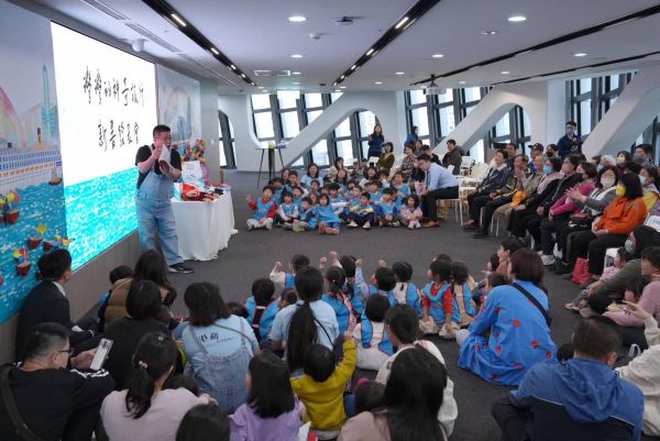 7.發表會聽陸爸爸說故事,演譯「灣灣的神奇旅行」繪本,大小朋友齊聚高雄港旅運中心。