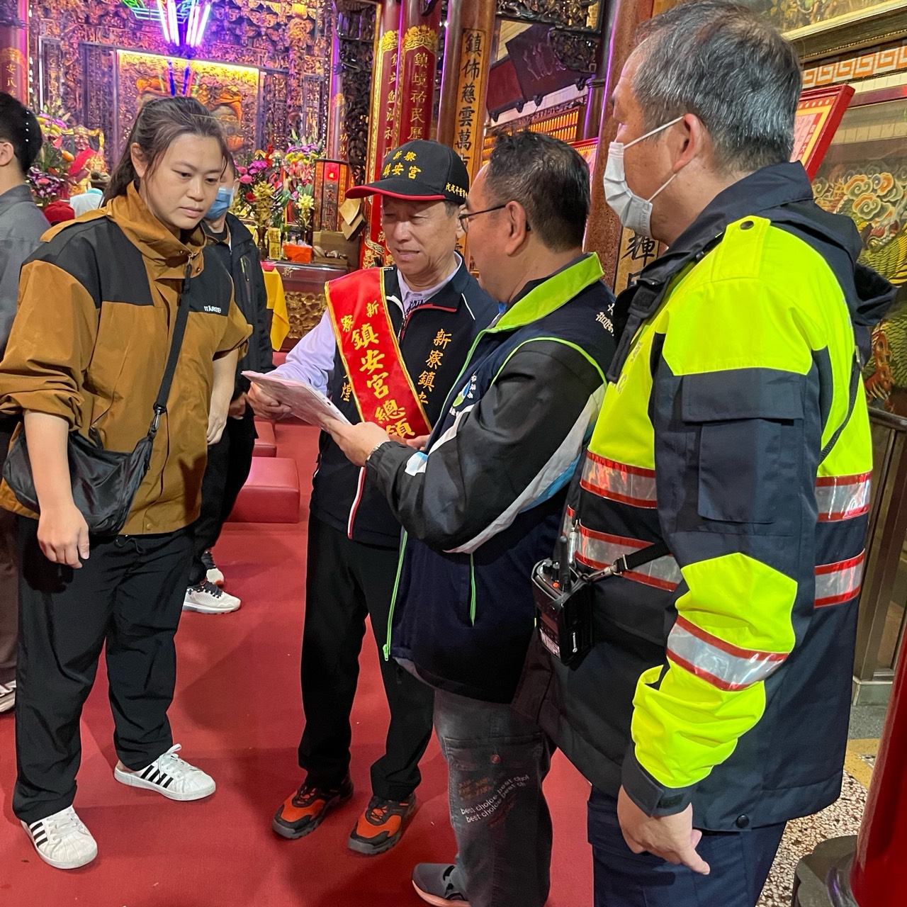▲安南區聯合稽查小組向主辦廟方勸導。(民政局 提供)