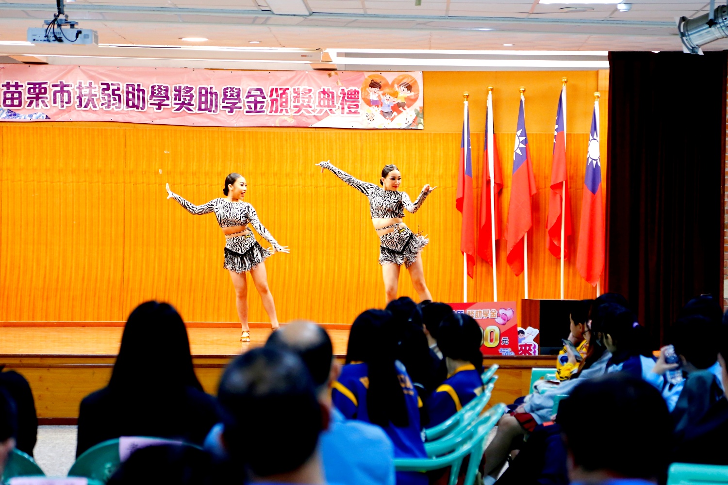 頒獎典禮的才藝表演由本次獲獎的同學擔綱演出,明仁國中李同學獨唱流行歌曲揭開表演序幕,接著是由曾獲「苗商好聲音」歌唱比賽第三名的黃同學獨唱,兩位同學的好嗓音讓台下觀眾掌聲不斷,謝同學和陳同學國標舞演出,熱情的音樂搭配純熟的舞姿,讓整場活動昇華為一場音樂和舞蹈的饗宴,最後由謝同學和陳同學兩人表演精彩絕倫的雙人國標舞,兩人共舞的絕佳默契和優美舞姿,讓整場表演充滿了美感及震撼。